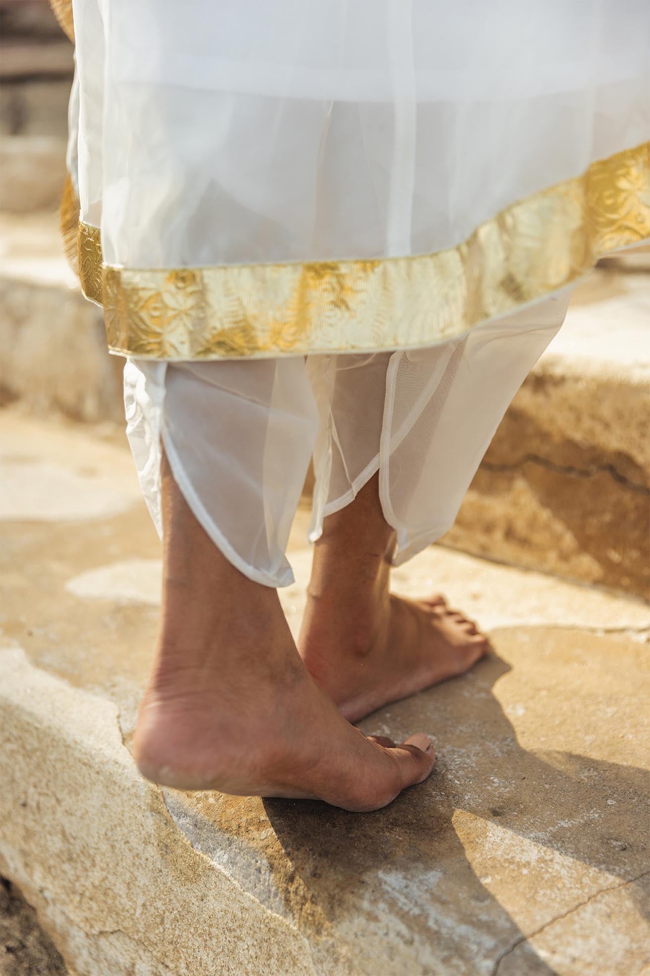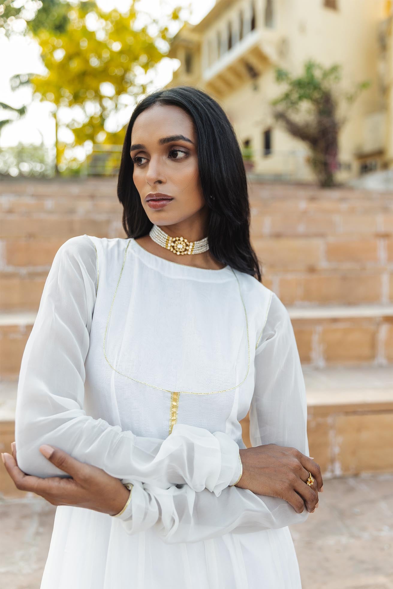 Azmat – handbemaltes und verziertes Anarkali-Set aus Organza in Weiß