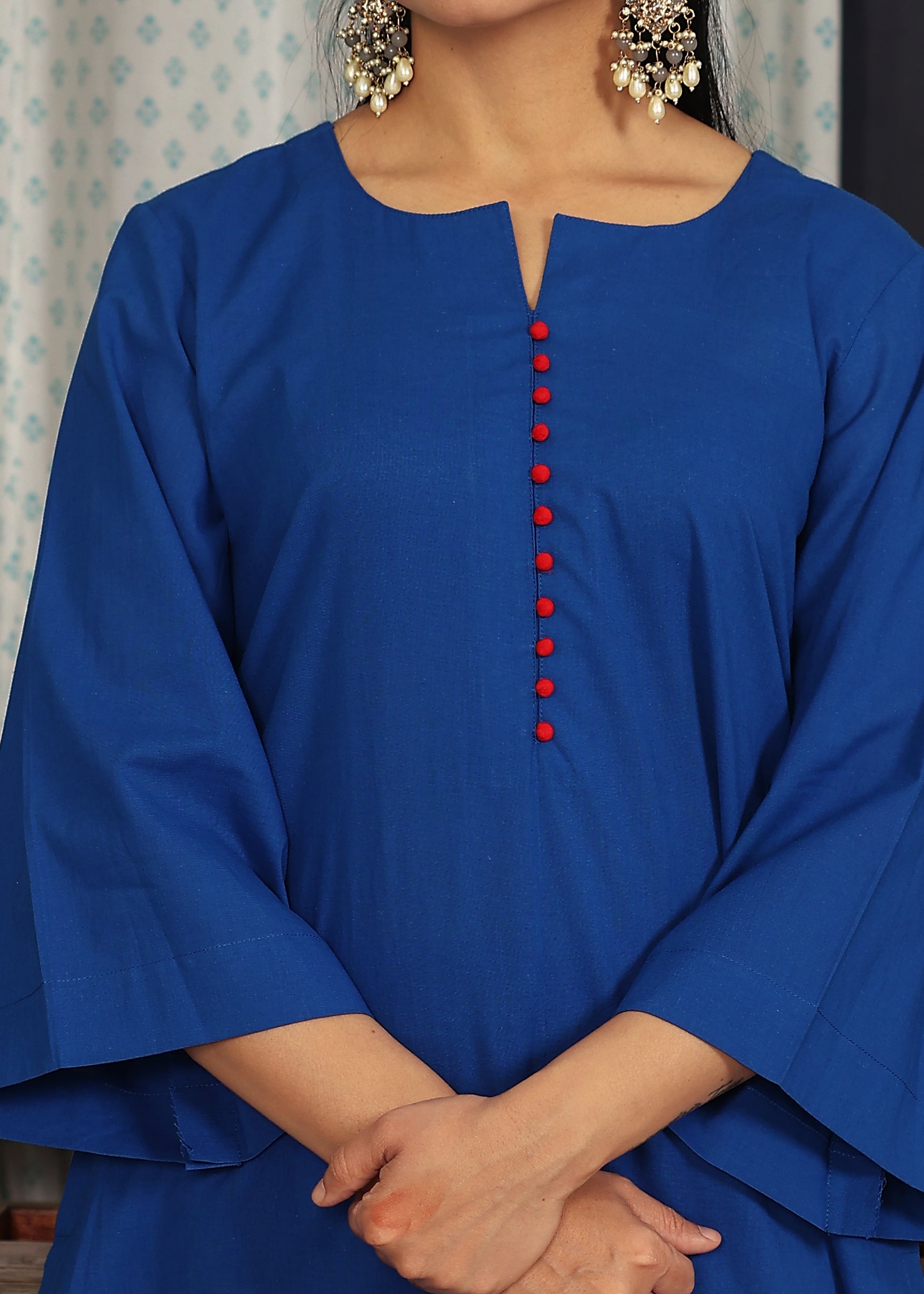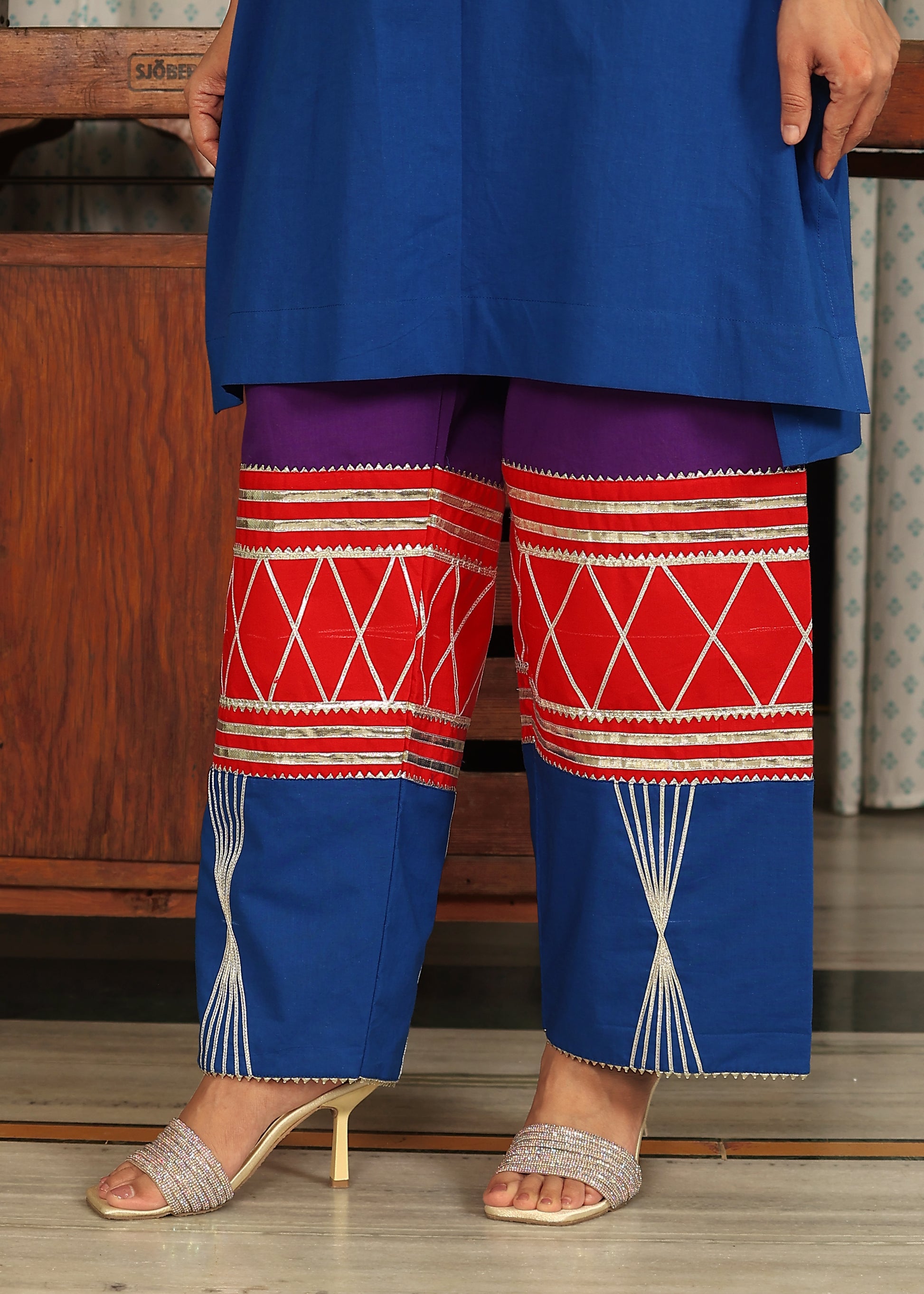 blue kurta with gotta work multicolored pants