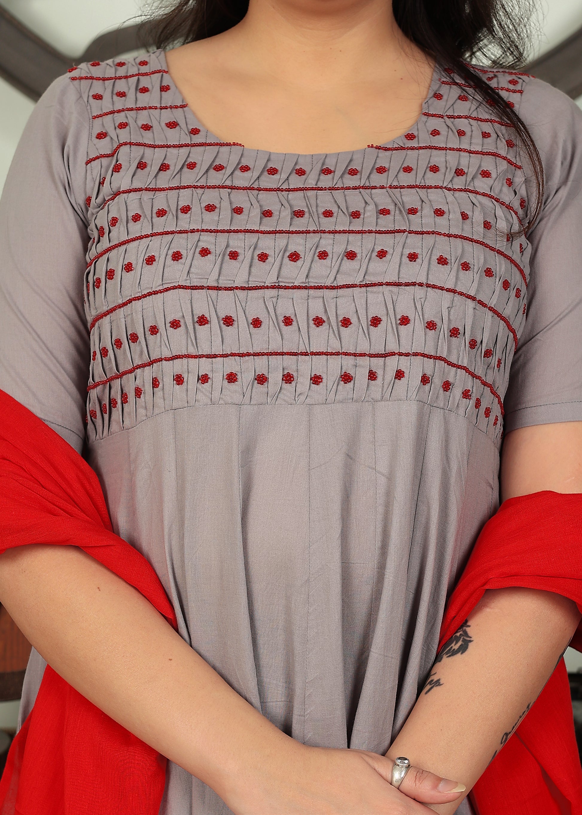 Elevate your ethnic wardrobe with this set of two grey kurtas featuring intricate gotta work detailing. Crafted for both comfort and style, these kurtas offer a refined look suitable for festive occasions or casual gatherings. The subtle grey shade combined with traditional embellishments ensures versatility and timeless appeal. Perfect for those who appreciate craftsmanship and understated elegance.