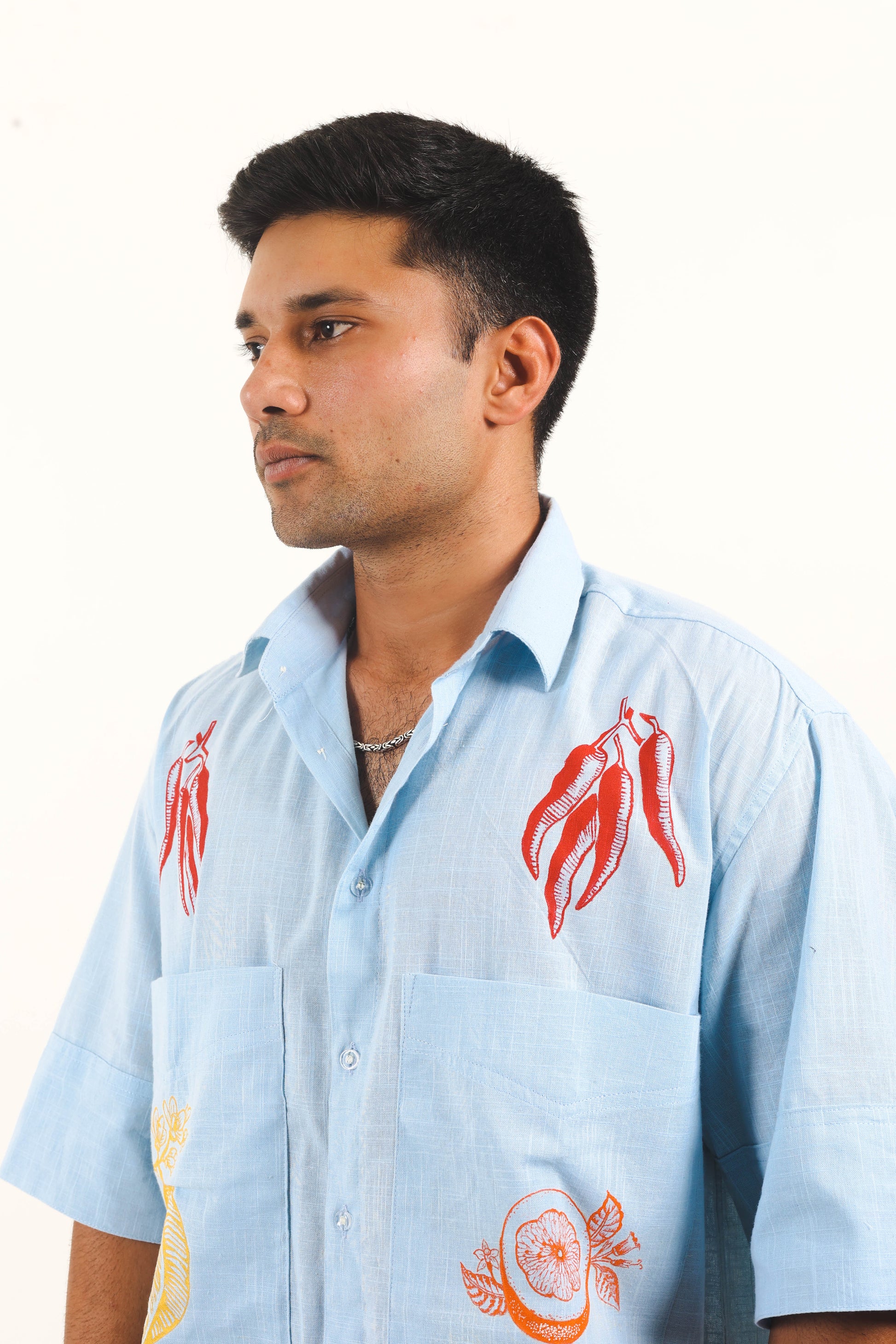 HELLBLAUES HANDBEMALTES BAUMWOLLHEMD