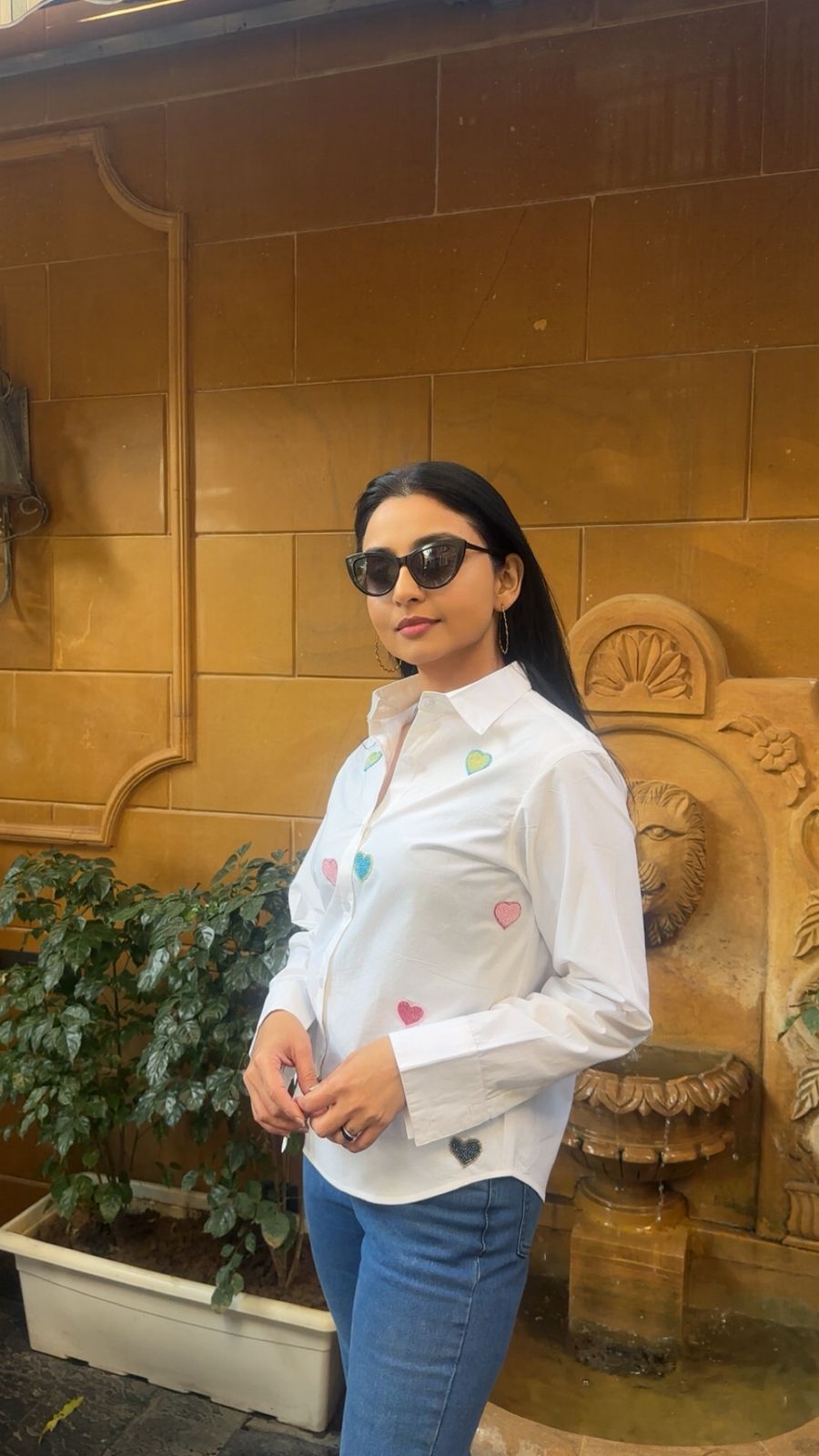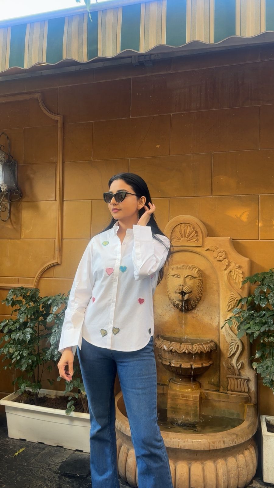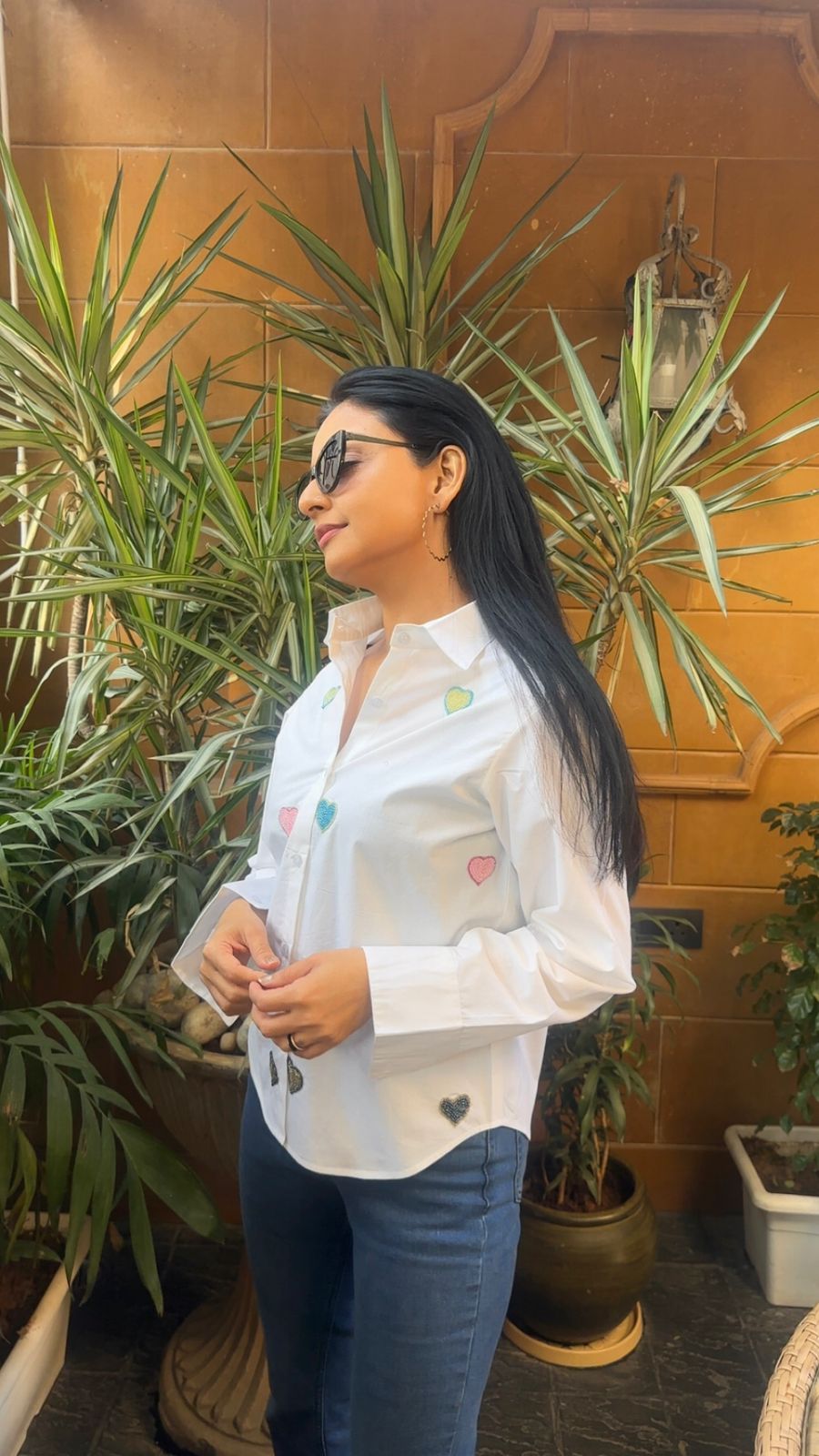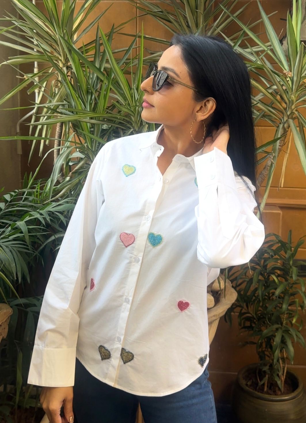 MULTICOLOR HEART HANDEMBROIDERED COTTON SHIRT