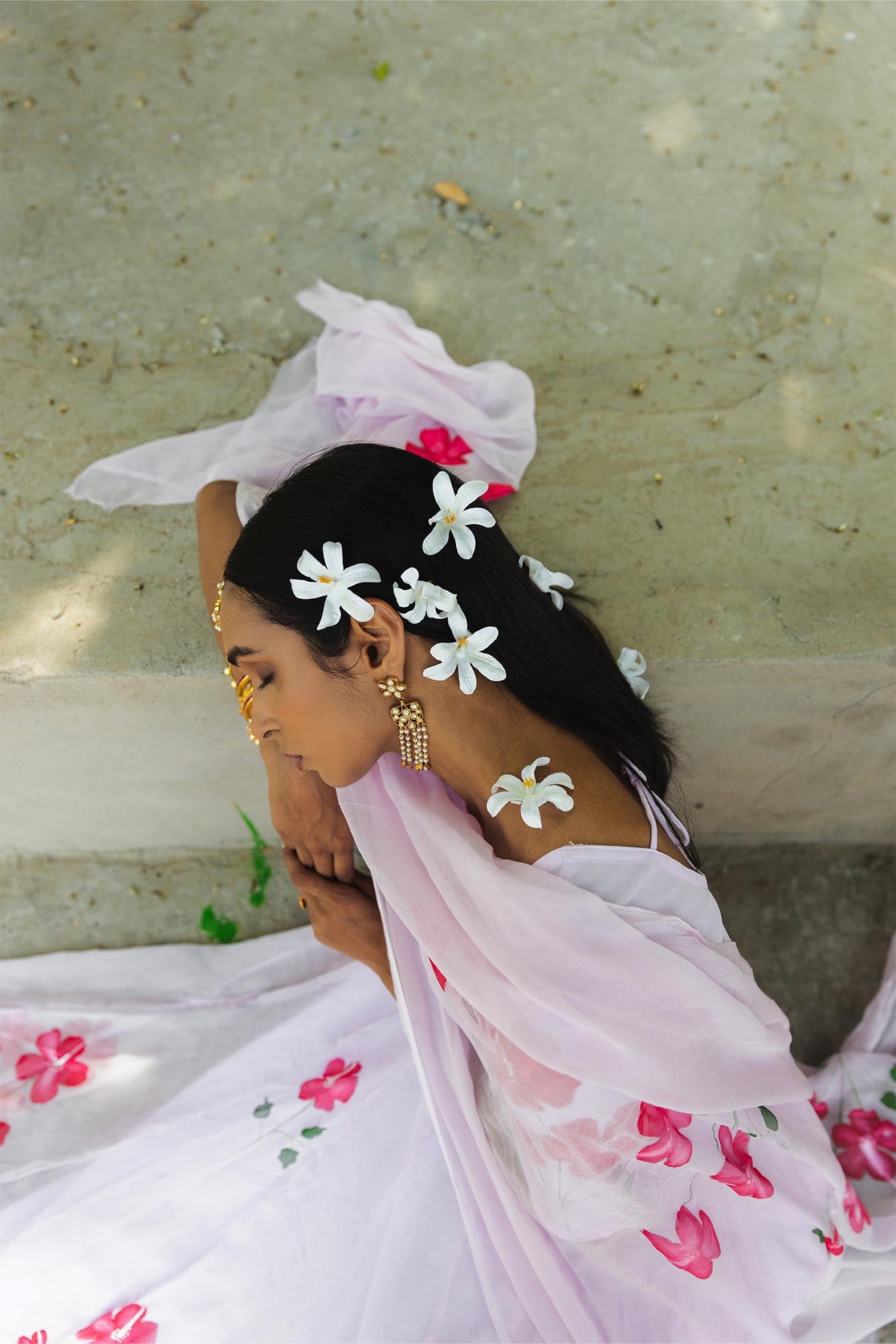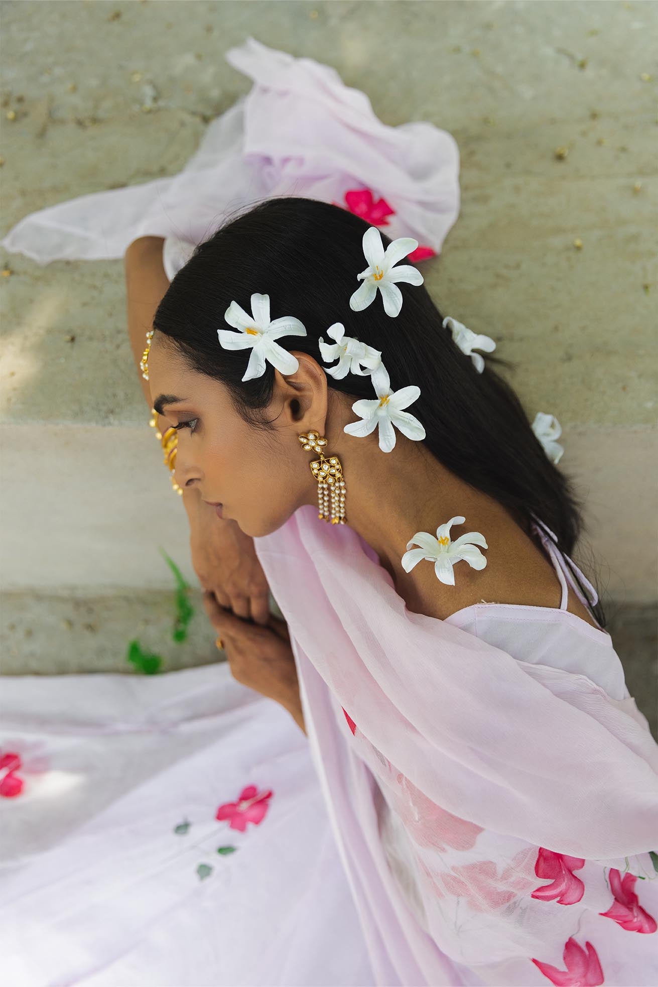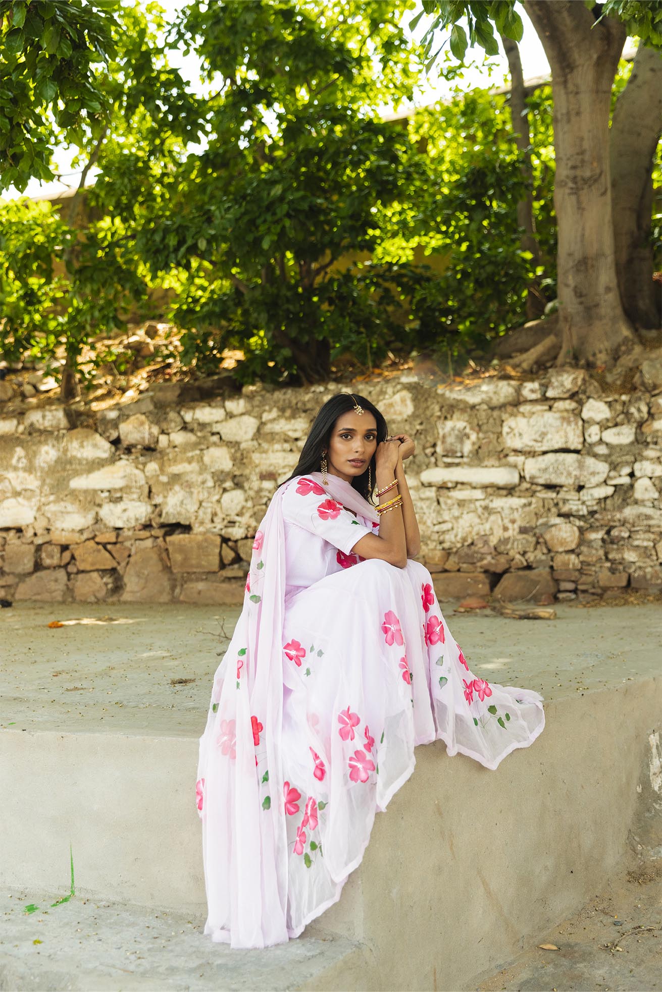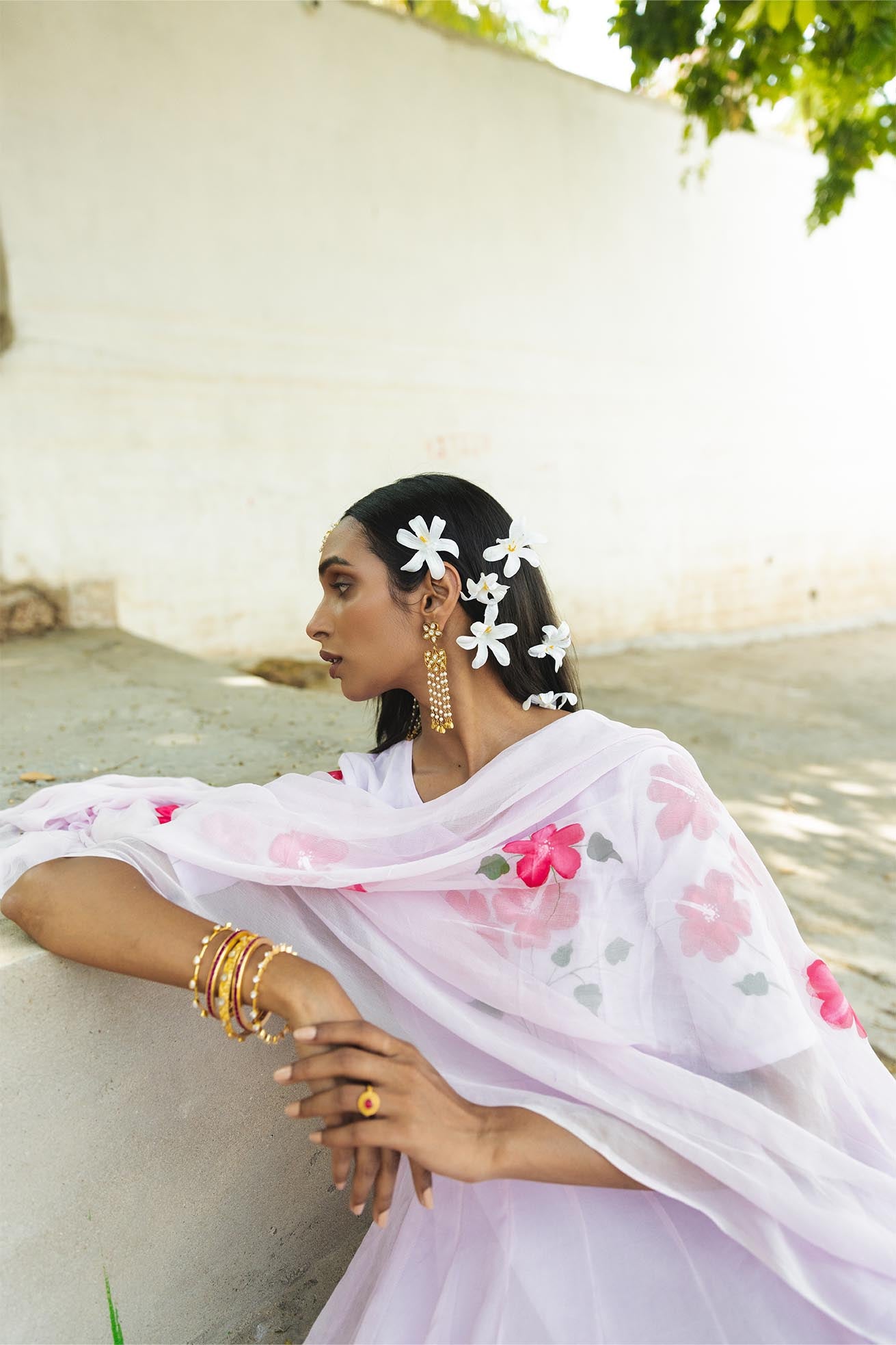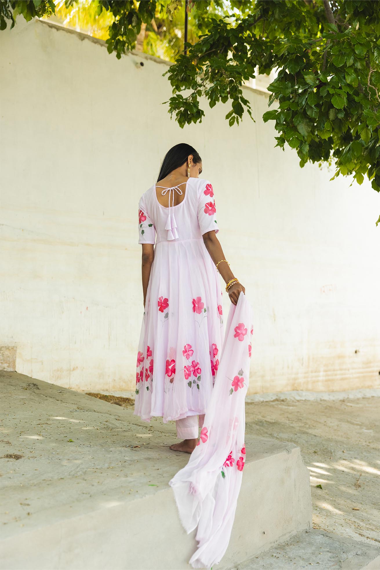 Nitya handbemaltes Chiffon-Anarkali-Anzug-Set in Hellrosa