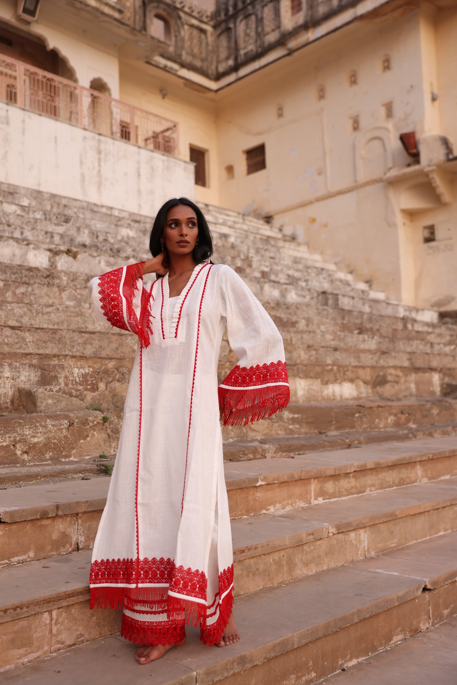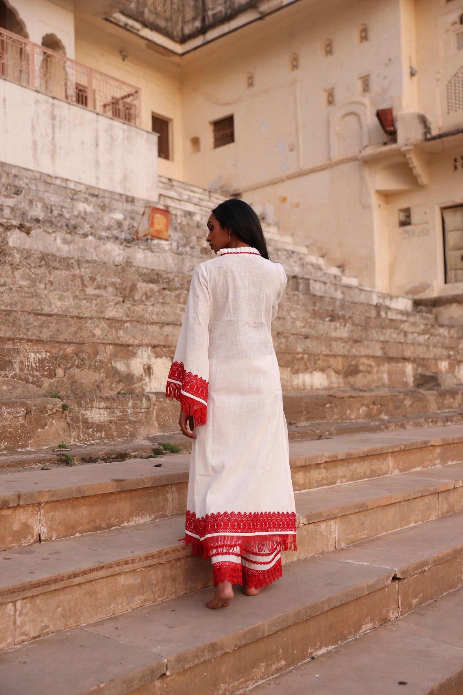 Oorja, handbemaltes pakistanisches Anzugset in Weiß und Rot
