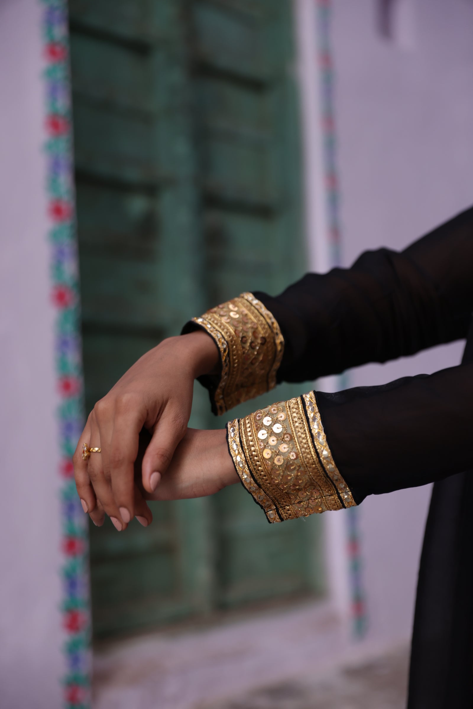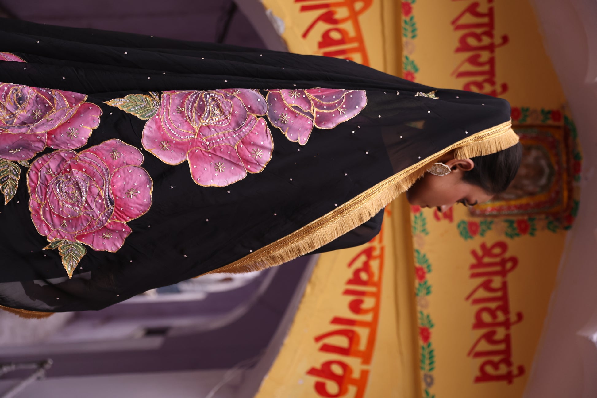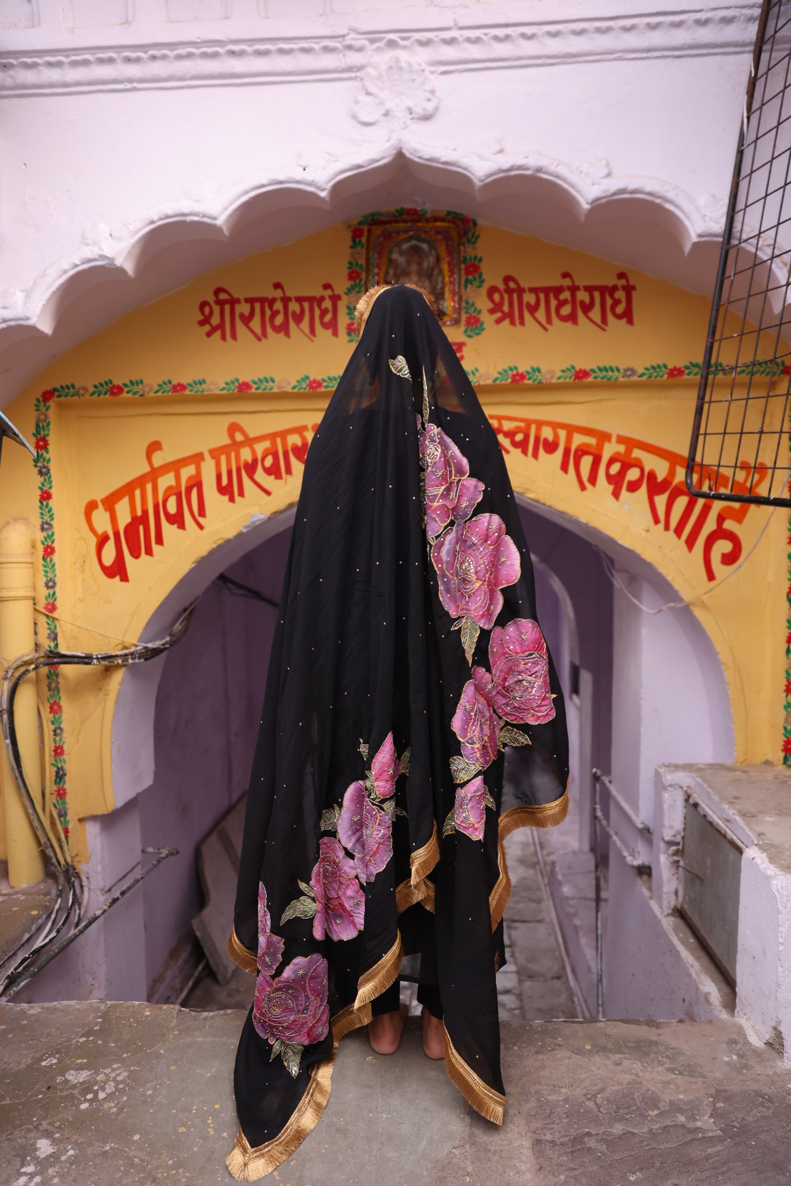 Riya – handbemaltes und verziertes Kurta-Set aus schwarzem Organza