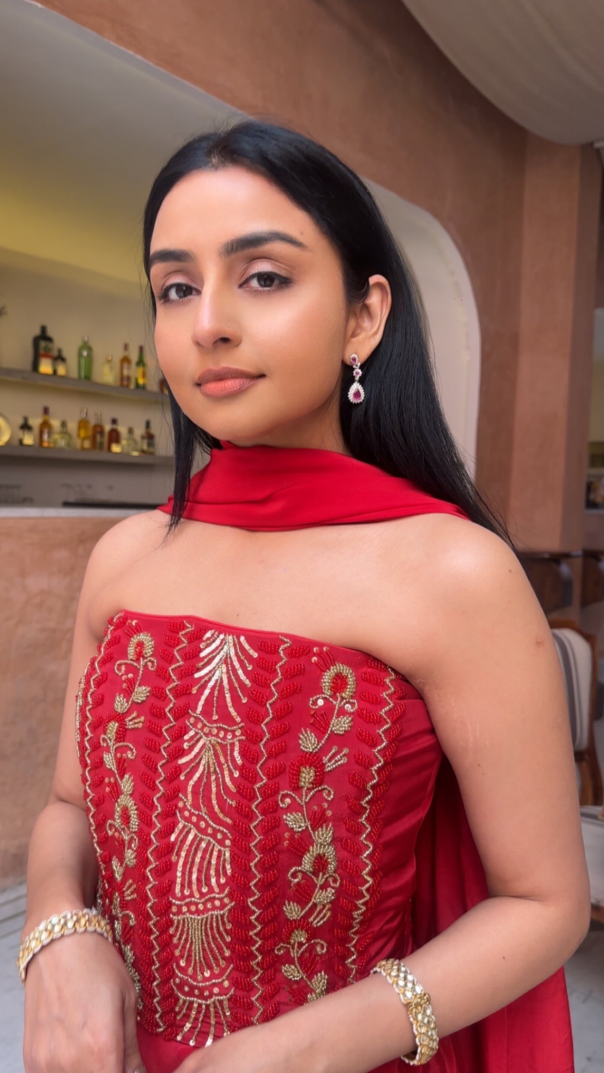 Elevate your ethnic wardrobe with the Tina Rouge Corset and Saree set—a sophisticated two-piece ensemble crafted from luxurious satin. Each piece features intricate handwork detailing, while the pre-draped saree ensures effortless styling and a flawless drape. Perfect for weddings, celebrations, or special occasions, this set combines traditional elegance with contemporary design. For personalized customizations or inquiries, reach out via email at imrozhouse@gmail.com or connect with us on Instagram @imroz_house_luxe.