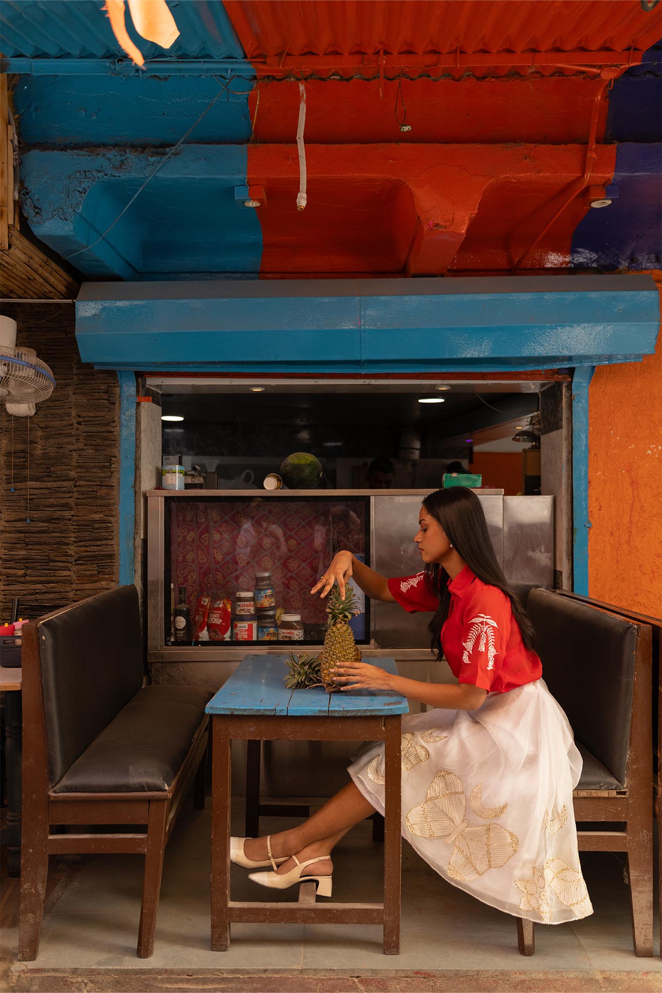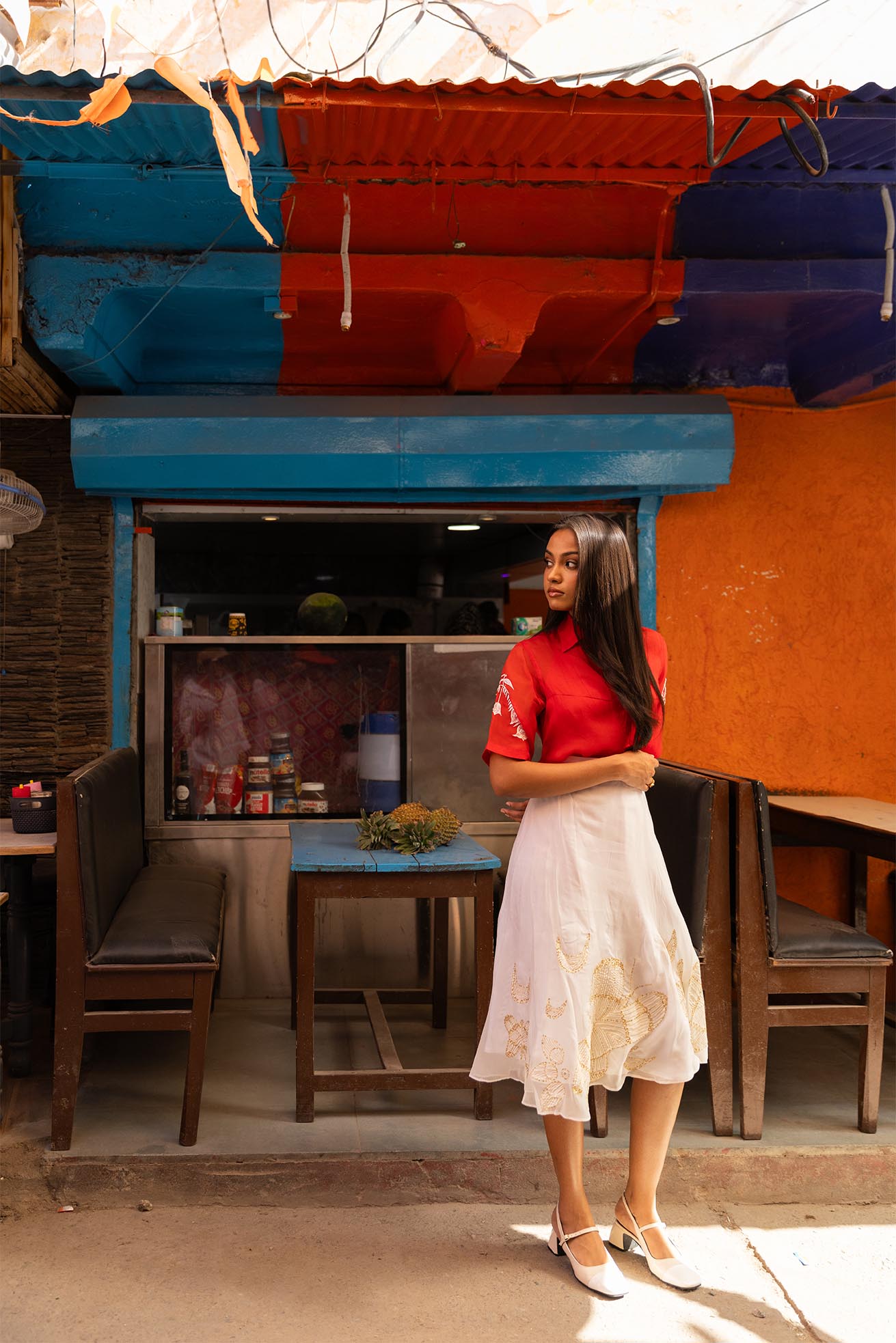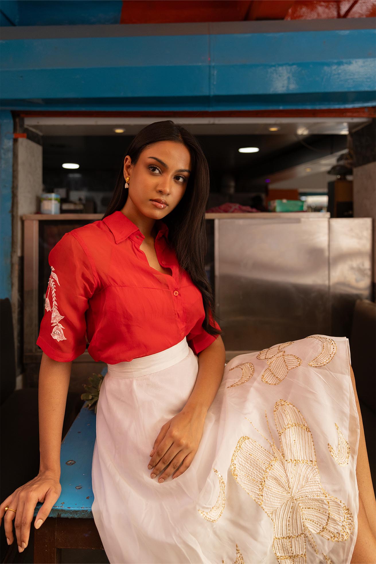 freya handpainted and hand embroidered skirt in organza