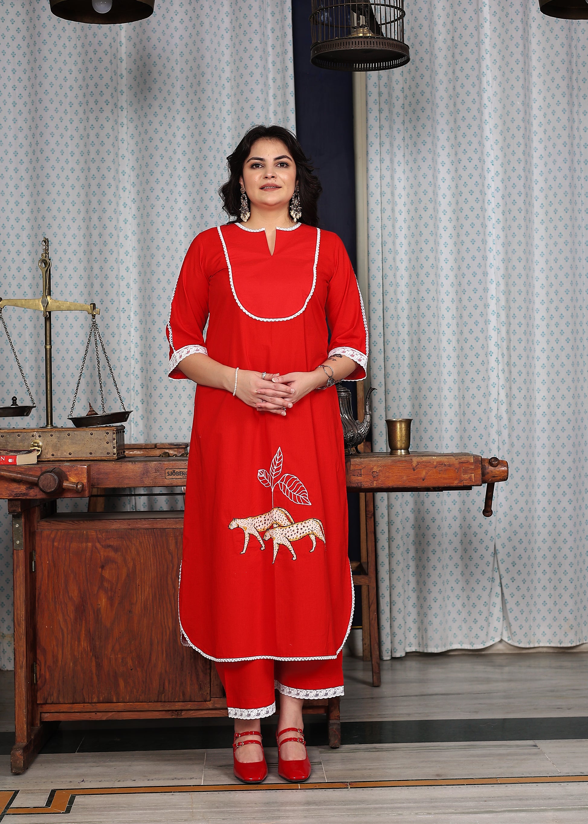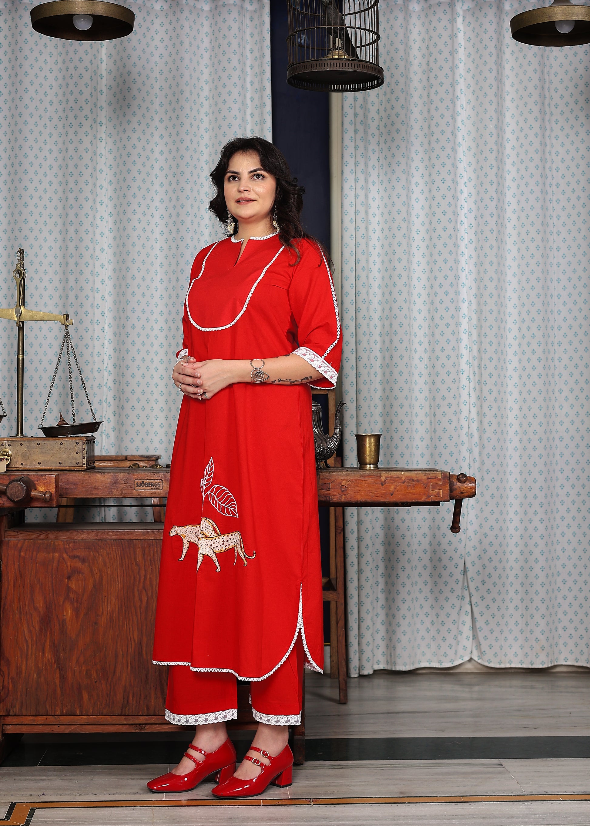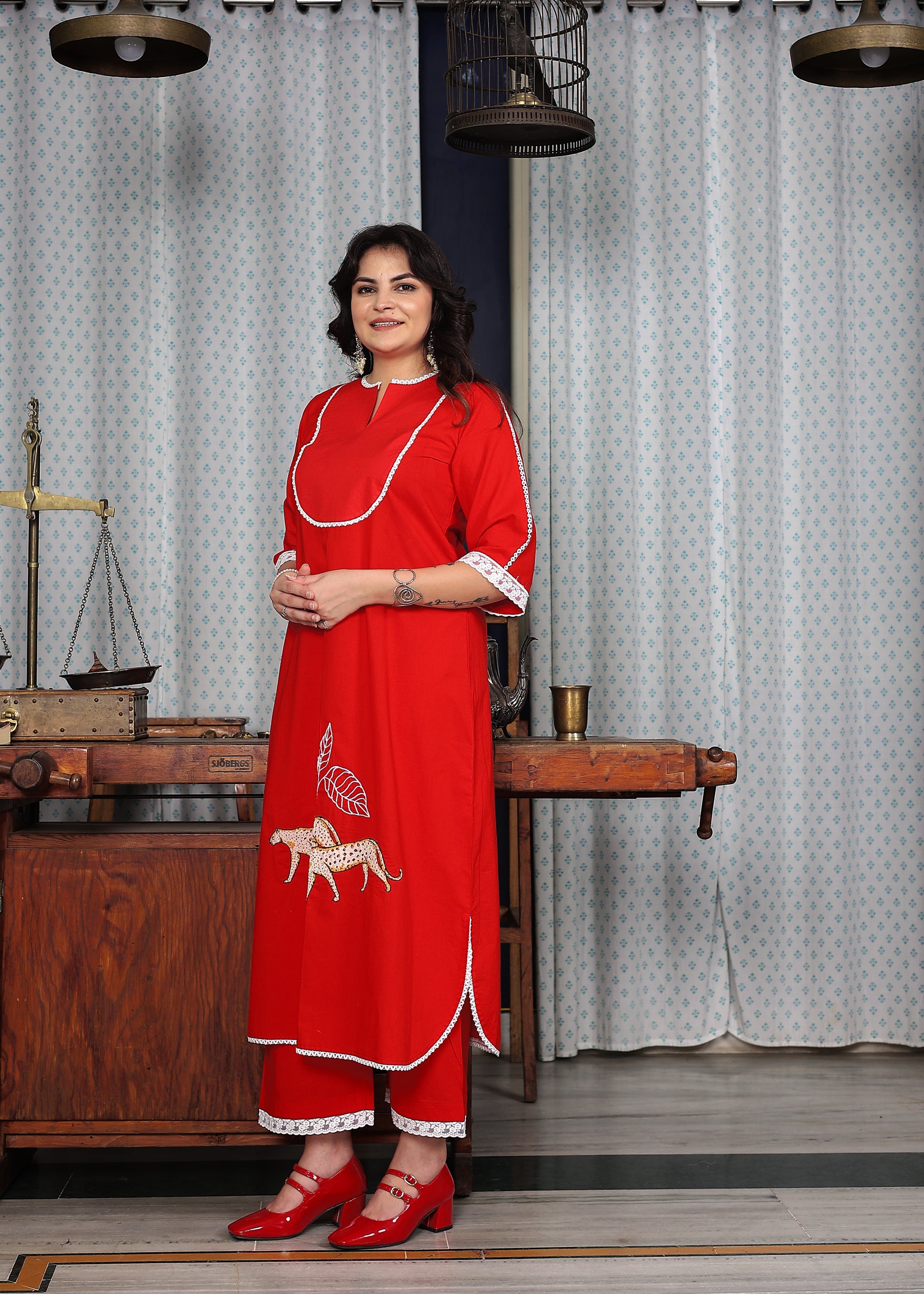 Laalkaar – Red Patchwork & Hand Embroidered Kurta Set