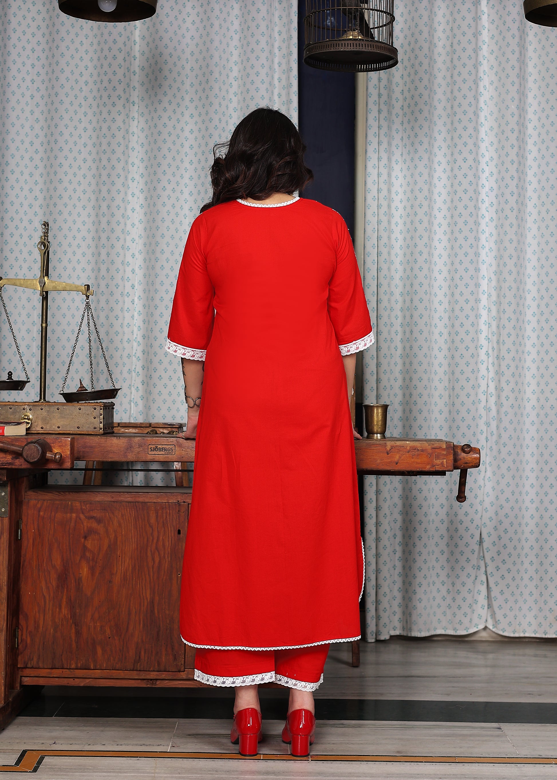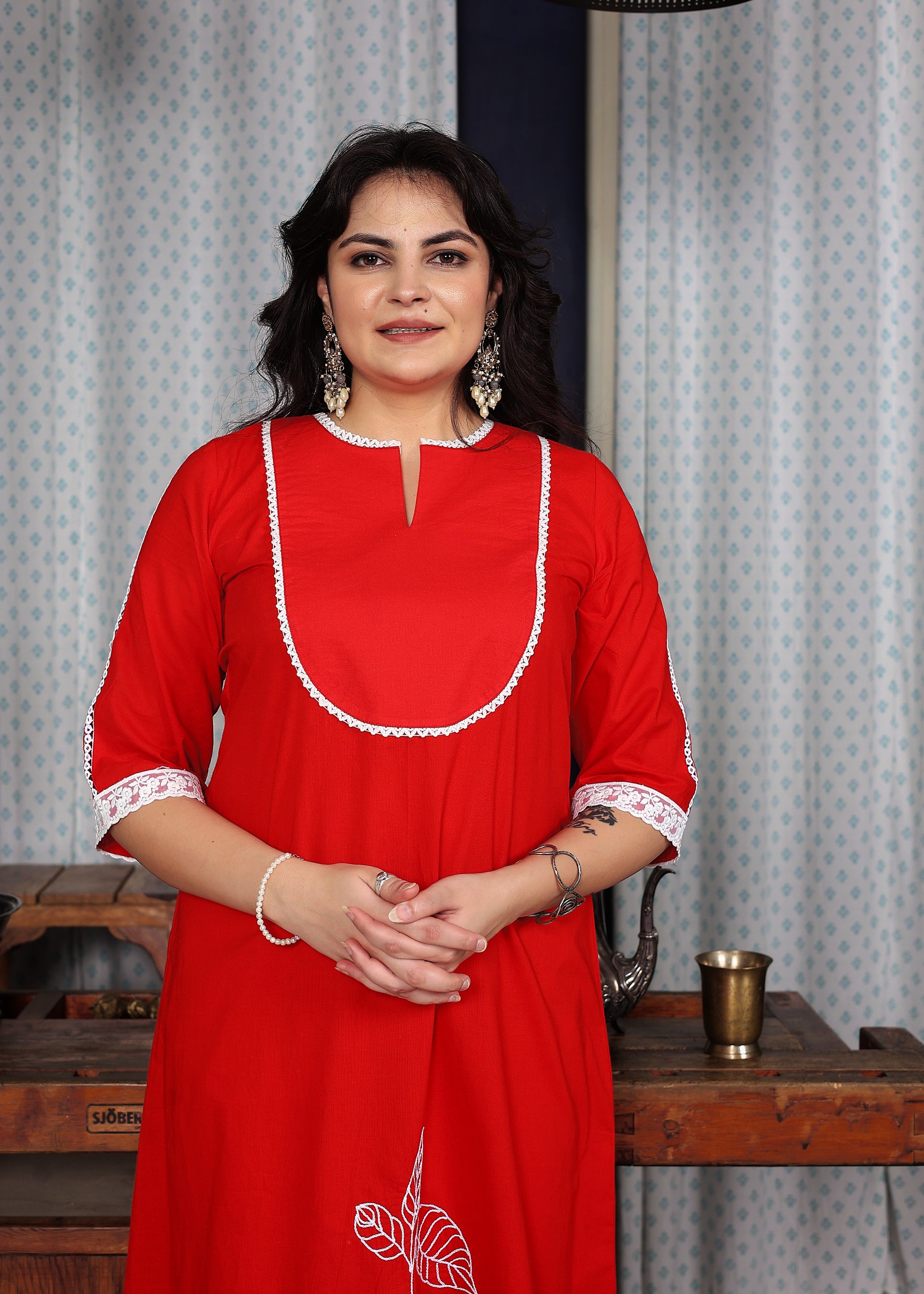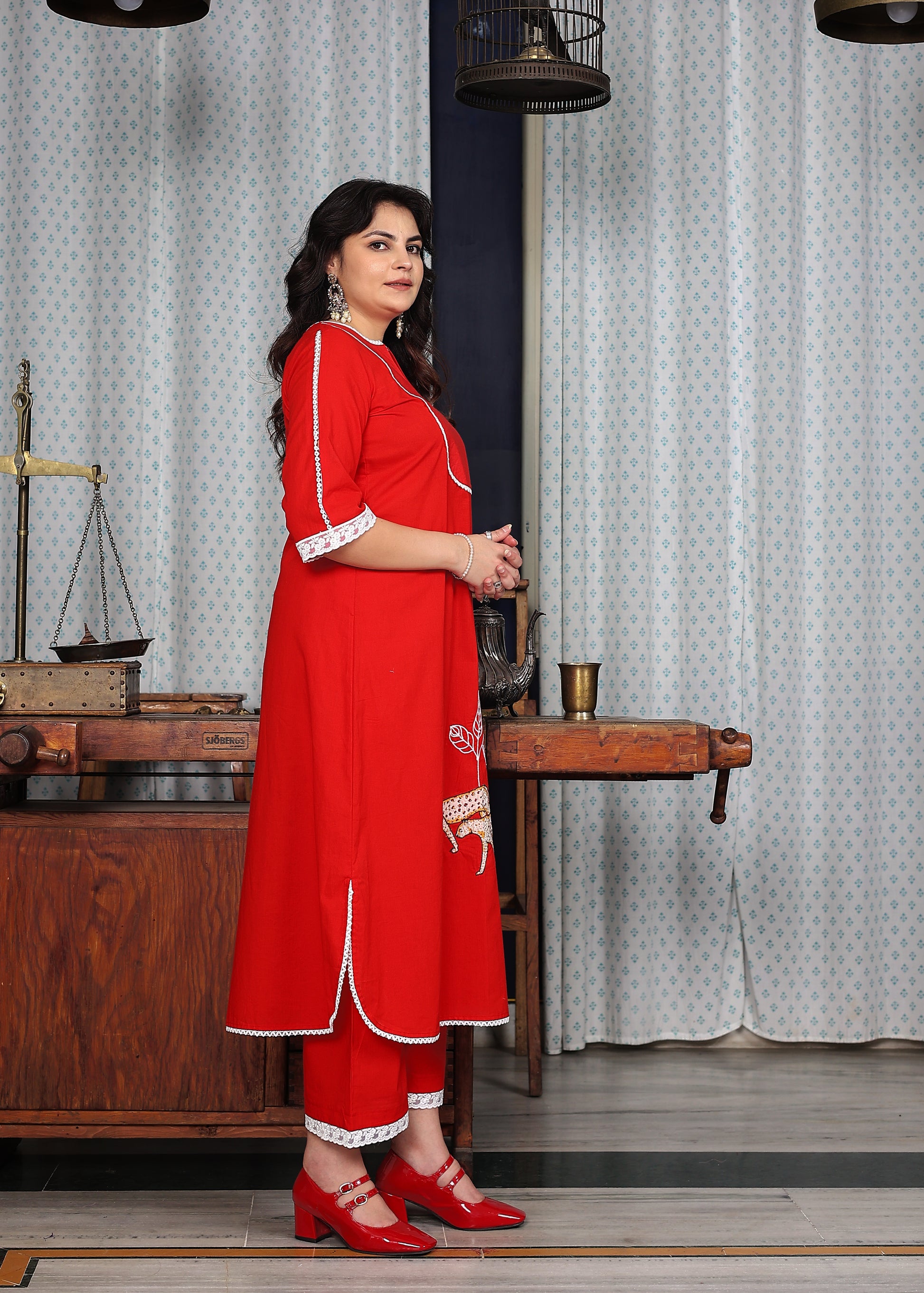 Laalkaar – Red Patchwork & Hand Embroidered Kurta Set