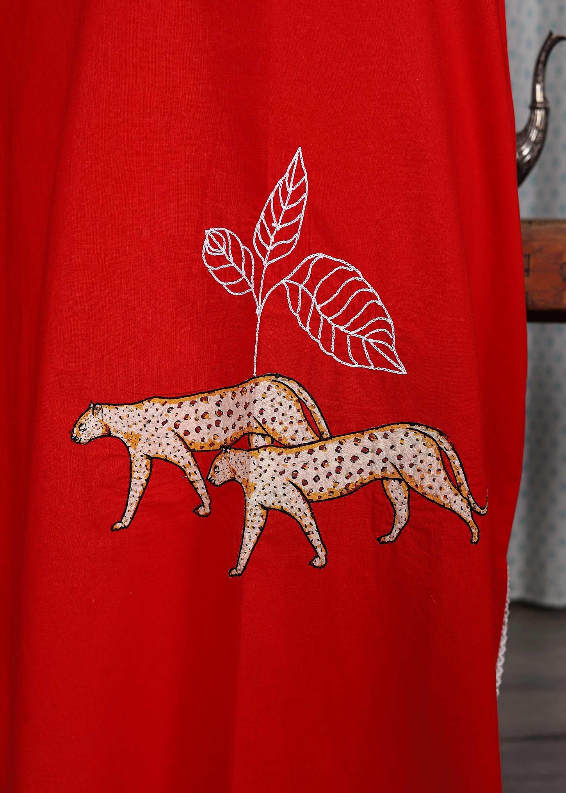 This red kurta set is stitched from remnants, transformed through mindful patchwork and adorned with intricate hand embroidery. Made in breathable cotton, every thread in Laalkaar carries the voice of artisans and the strength of sustainable craft. It’s not just a garment — it’s a revolution in red.