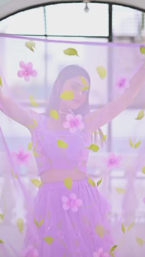 Step into a world of elegance with the Lavender Organza Handpainted Lehenga Set, a stunning piece from the Saadgi Collection by Savina Imroz House. This exquisite 3-piece ensemble features:
