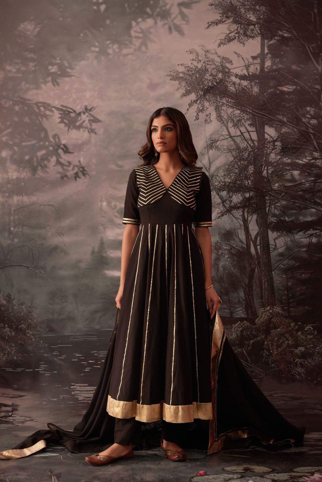 Reena Black Cotton Gotta Anarkali Set – Elegant & Timeless