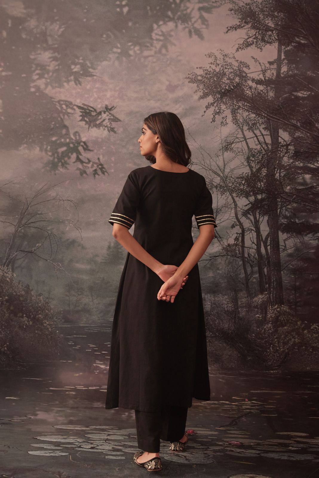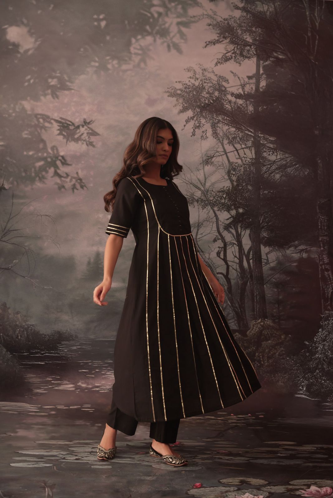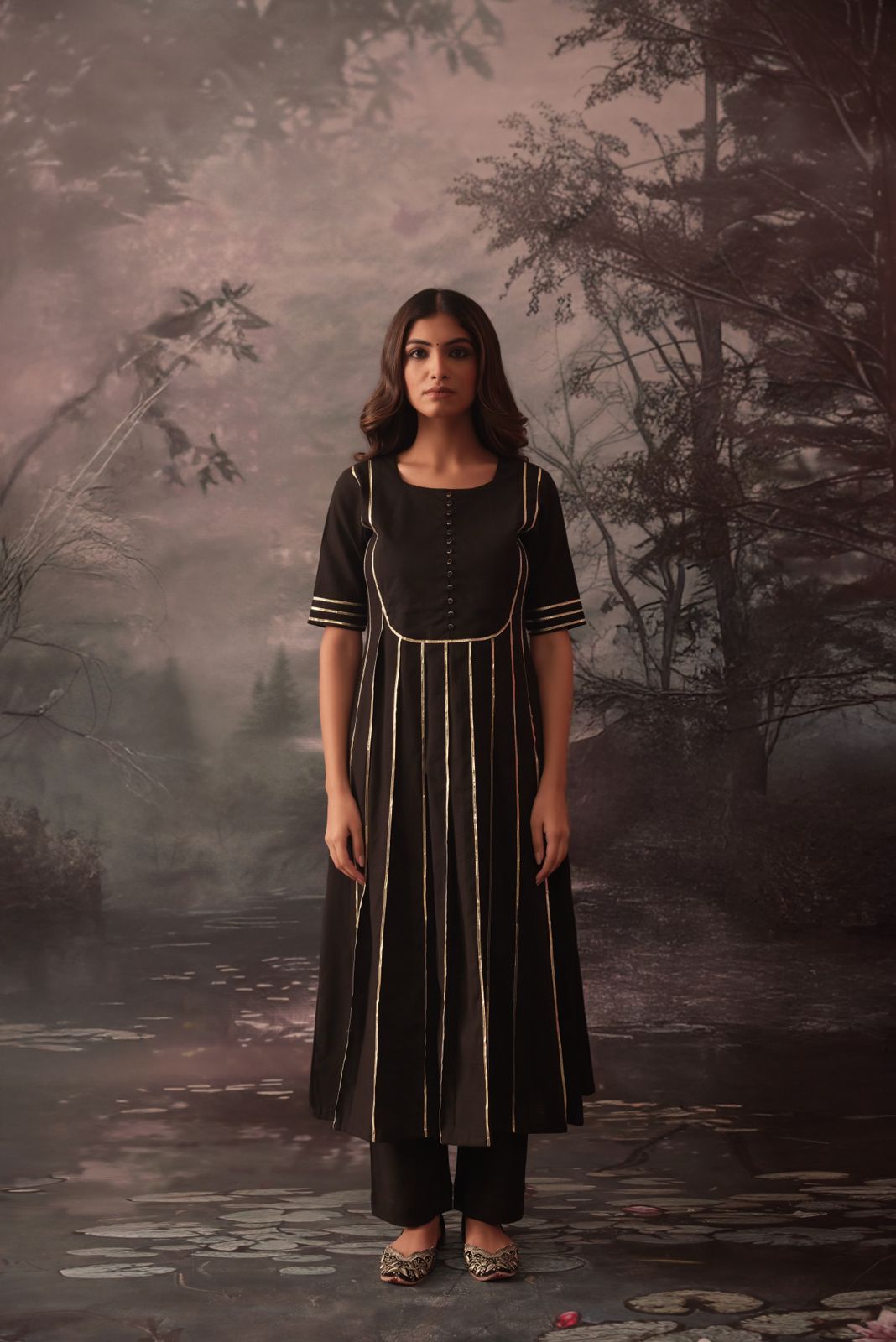reena black gotta work pintucks kurta and pant set of 2