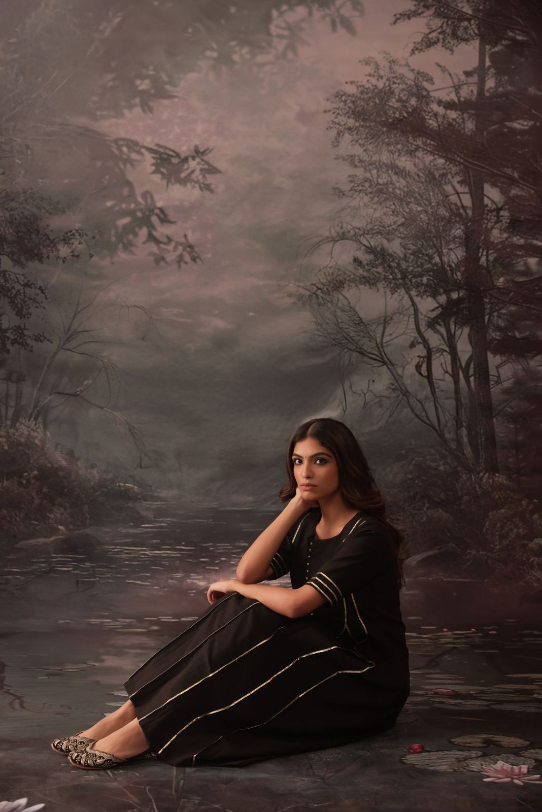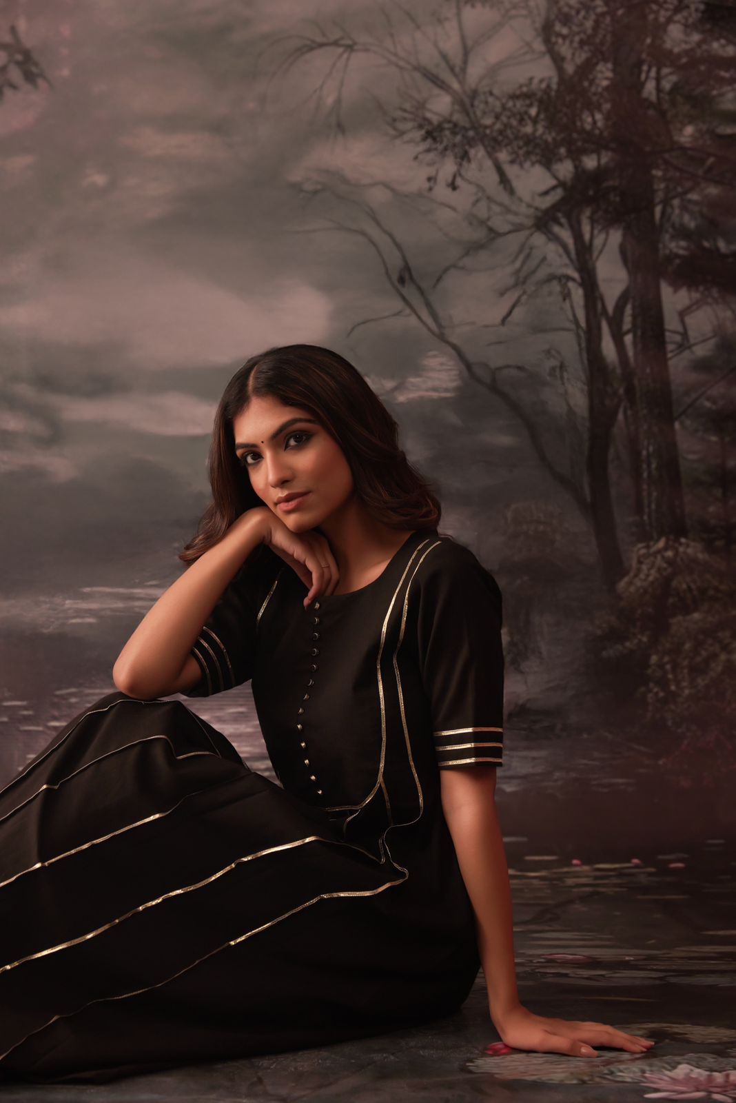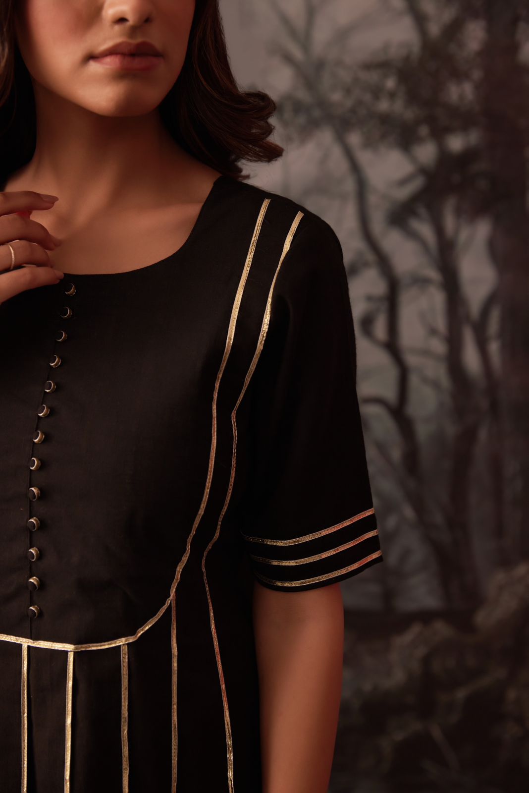 reena black gotta work pintucks kurta and pant set of 2