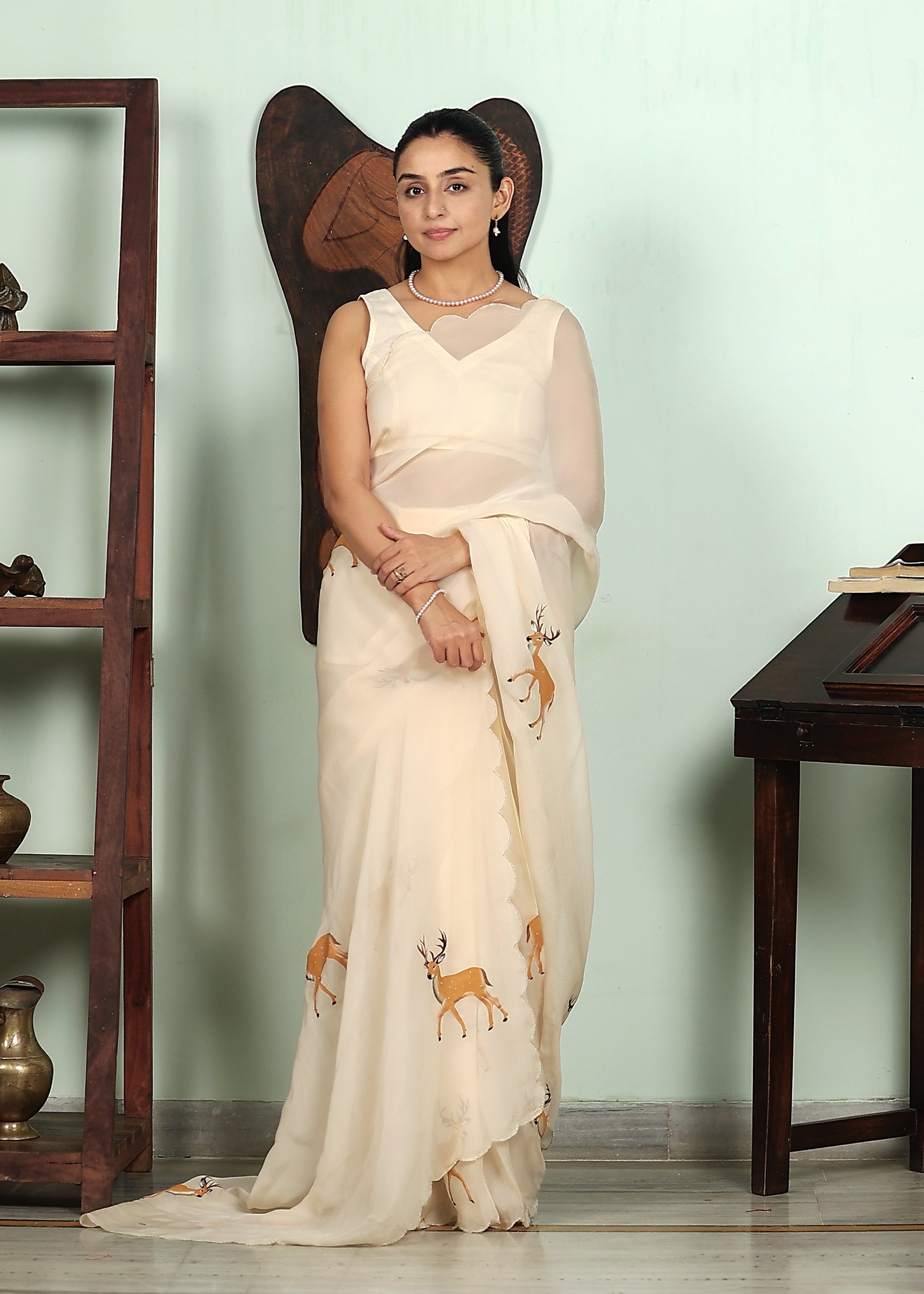 Celebrate festive elegance with the Reindeer Saree, a unique blend of traditional craftsmanship and seasonal charm. This saree features intricate motifs inspired by reindeer, woven with precision to add a subtle yet distinctive flair to your wardrobe. Crafted from high-quality fabric, it offers both comfort and style, making it ideal for holiday gatherings and special occasions. Elevate your ethnic collection with this expert-crafted piece that balances classic design with a festive twist.