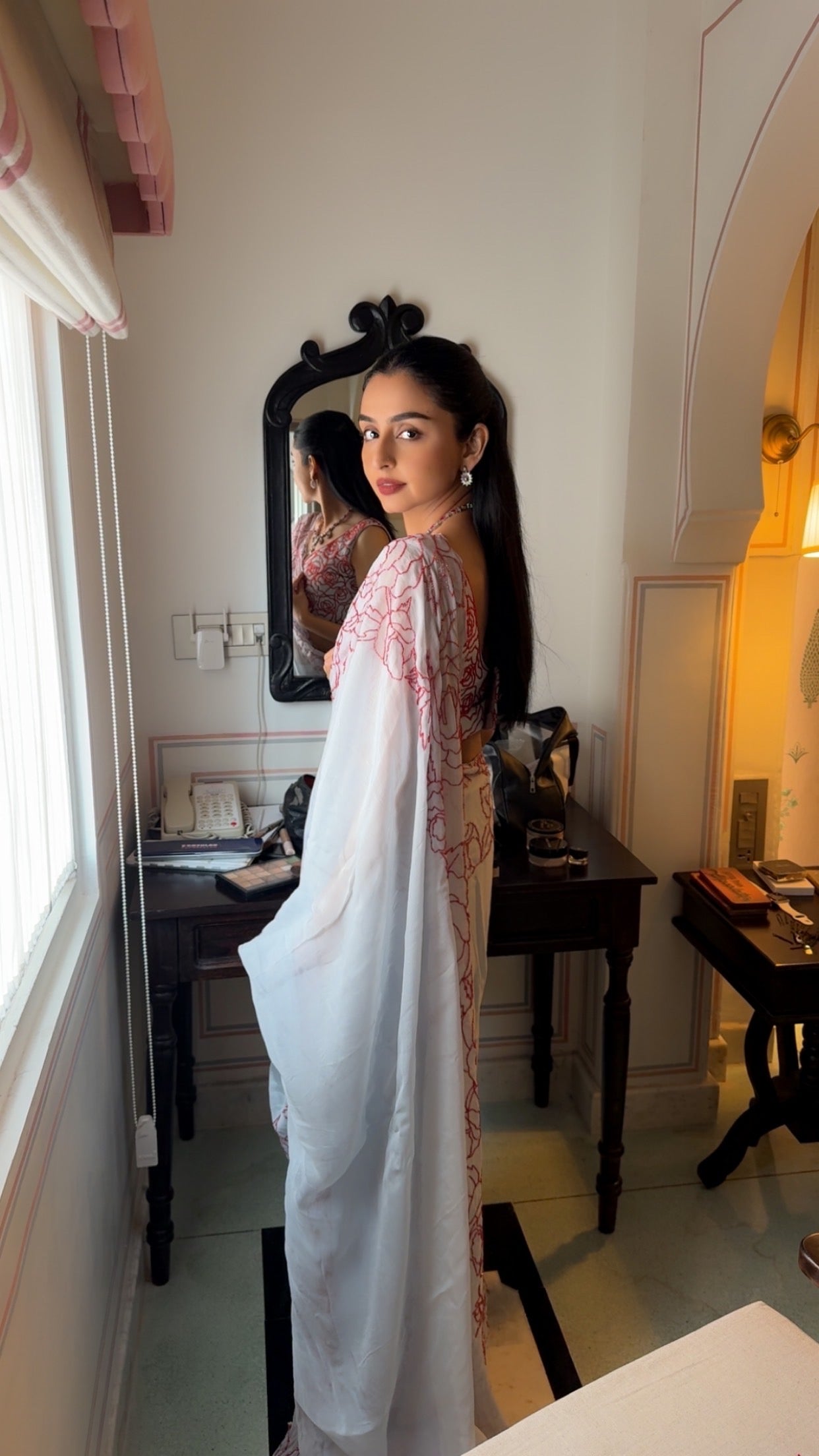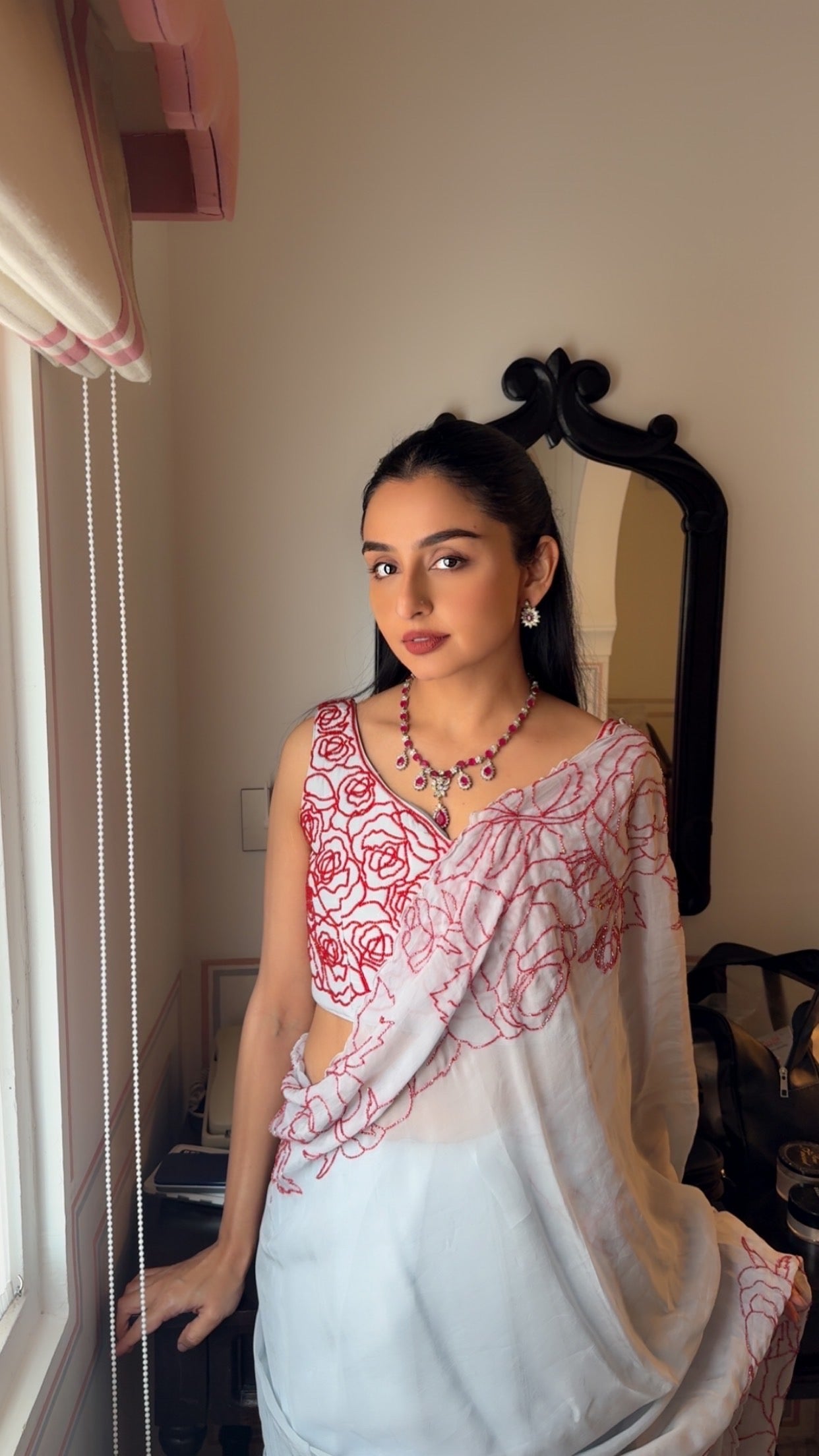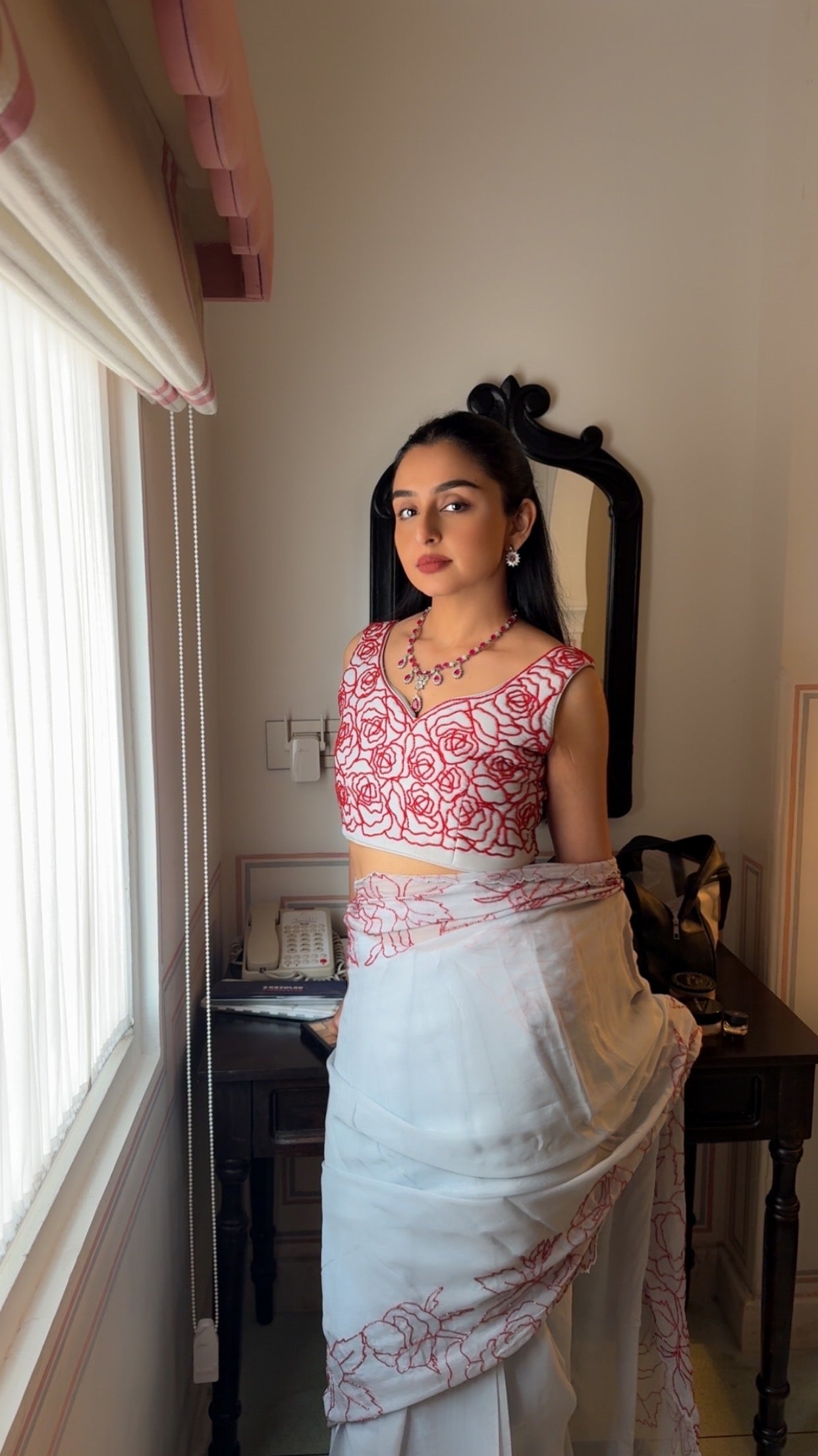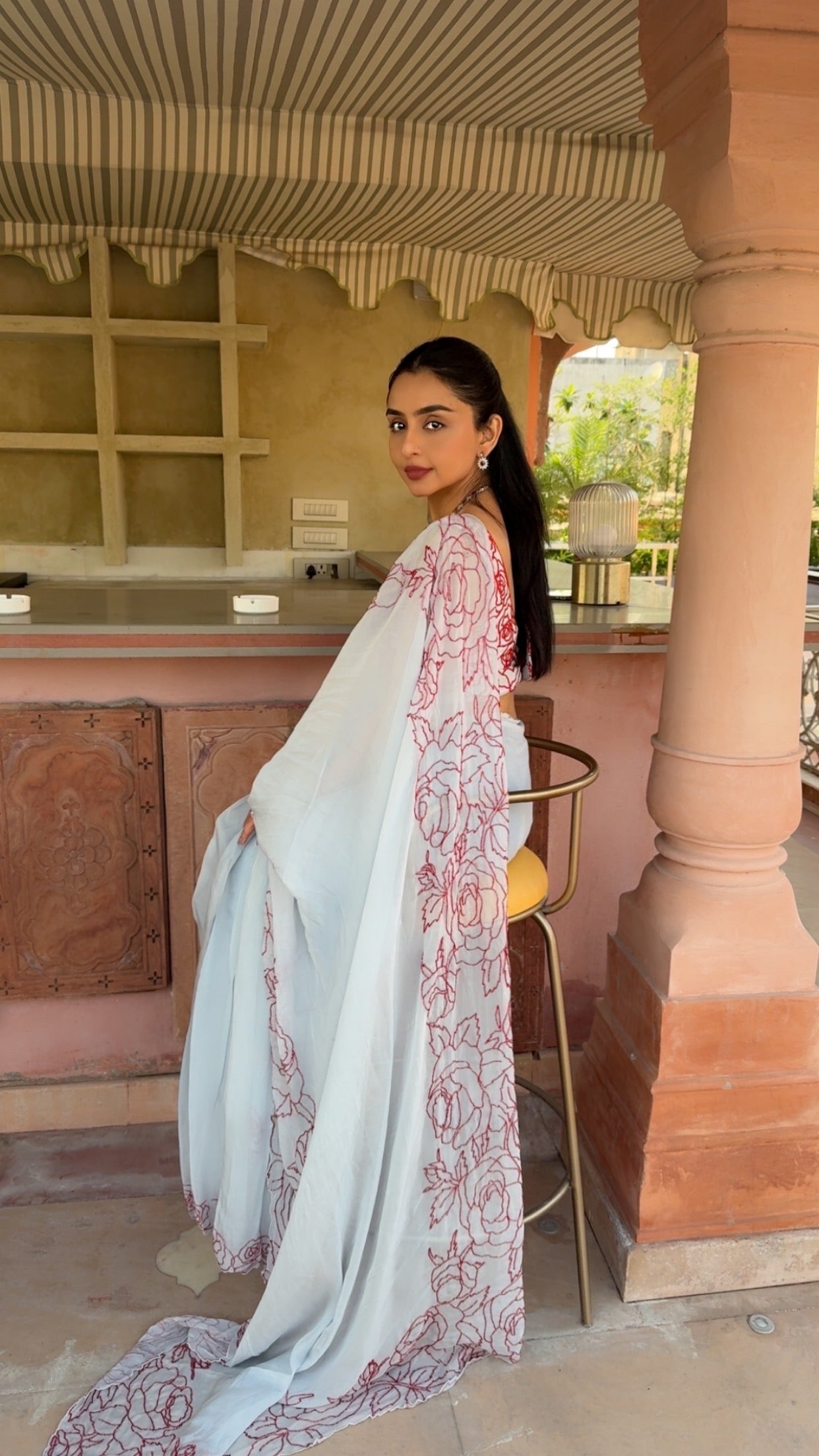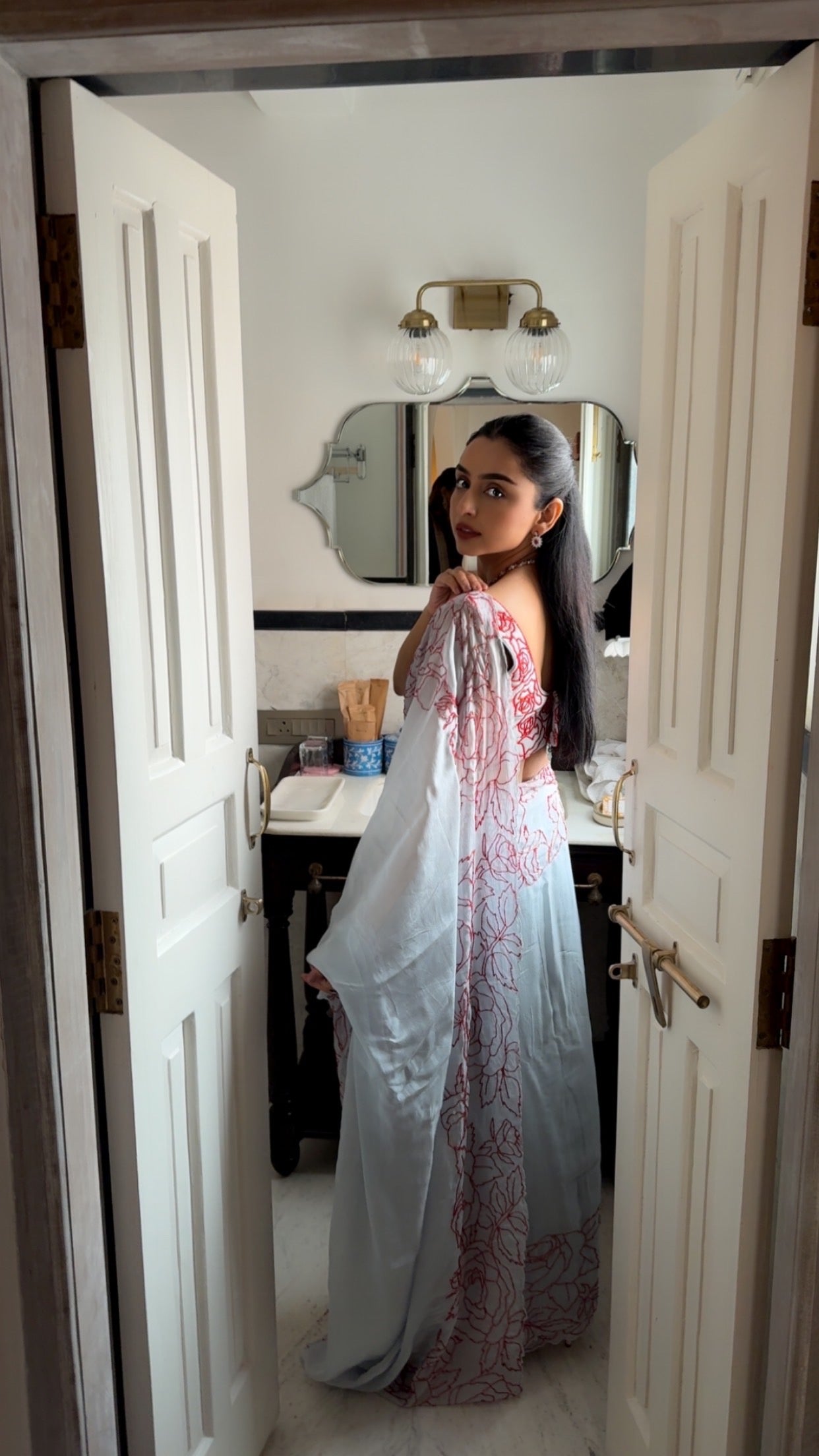 Introducing the Rosie Saree, a sophisticated grey organza creation that showcases the timeless artistry of traditional handwork. Each piece features intricate moti embellishments meticulously applied by skilled artisans, creating a luminous, textured surface that catches light beautifully. The delicate organza fabric drapes elegantly while maintaining its structure, making it ideal for weddings, celebrations, and special occasions. The hand-crafted moti work elevates this saree beyond mass-produced alternatives, offering you a garment with authentic craftsmanship and individual character. Perfect for those who appreciate the dedication and precision of traditional textile arts.