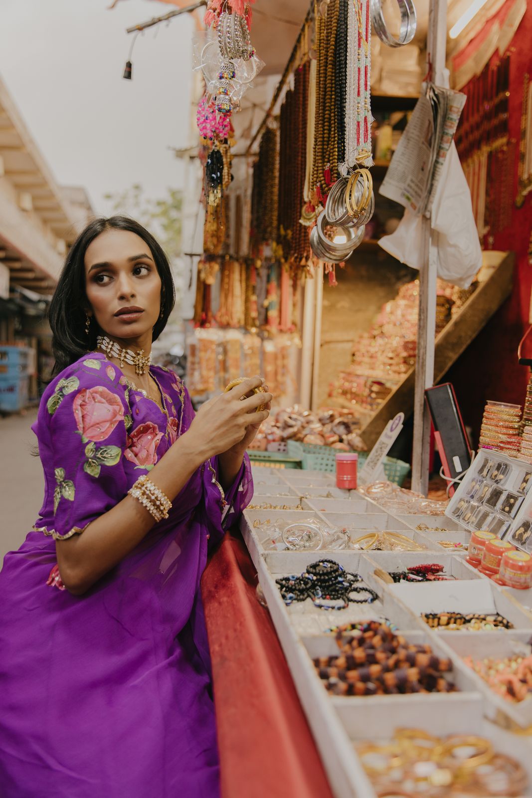 Step into elegance with the Savina Purple Handpainted & Hand-Embellished Saree, a mesmerizing piece from the Nirvana Collection by Savina Imroz House. This exquisite saree features: