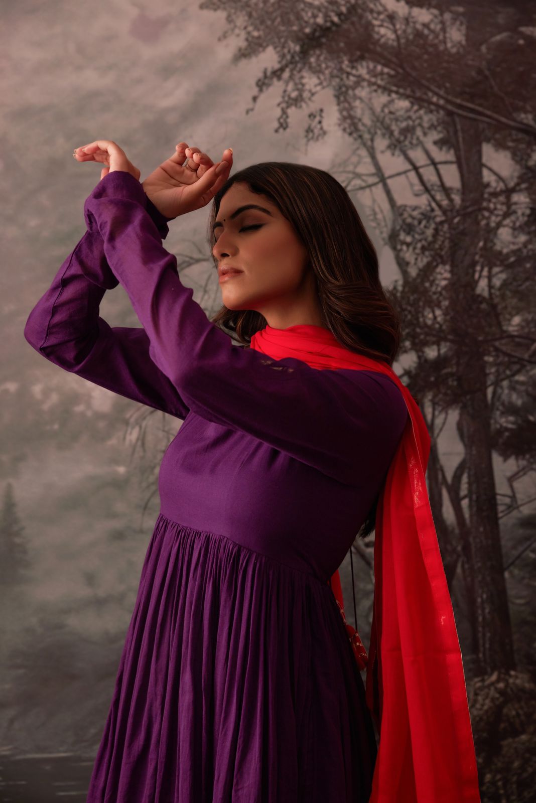 Purple Shalaka Full Sleeves Malmal Anarkali Set – Summer Elegance