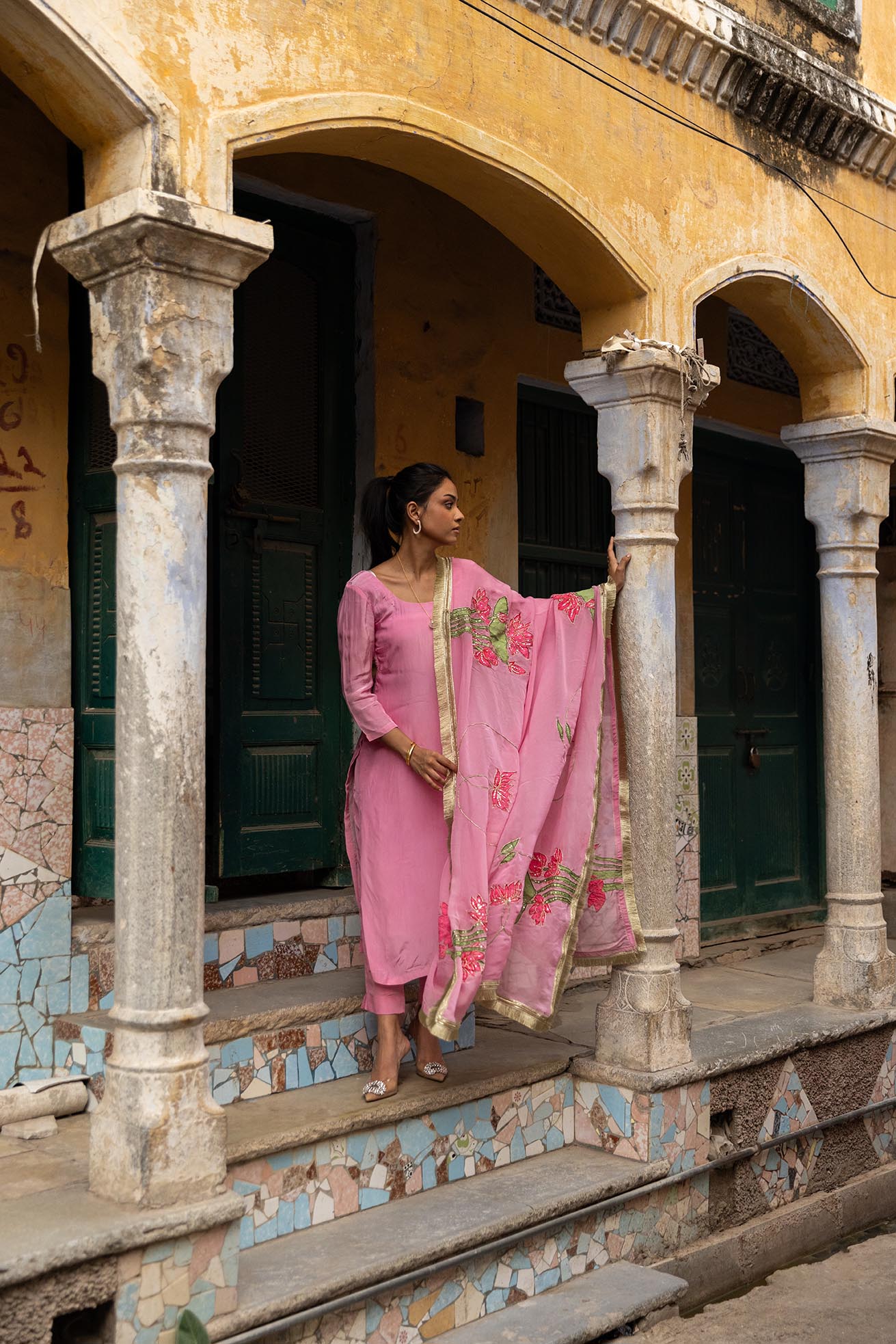 ✔ Luxurious Crepe Kurta – Soft, flowing fabric with handpainted artistry