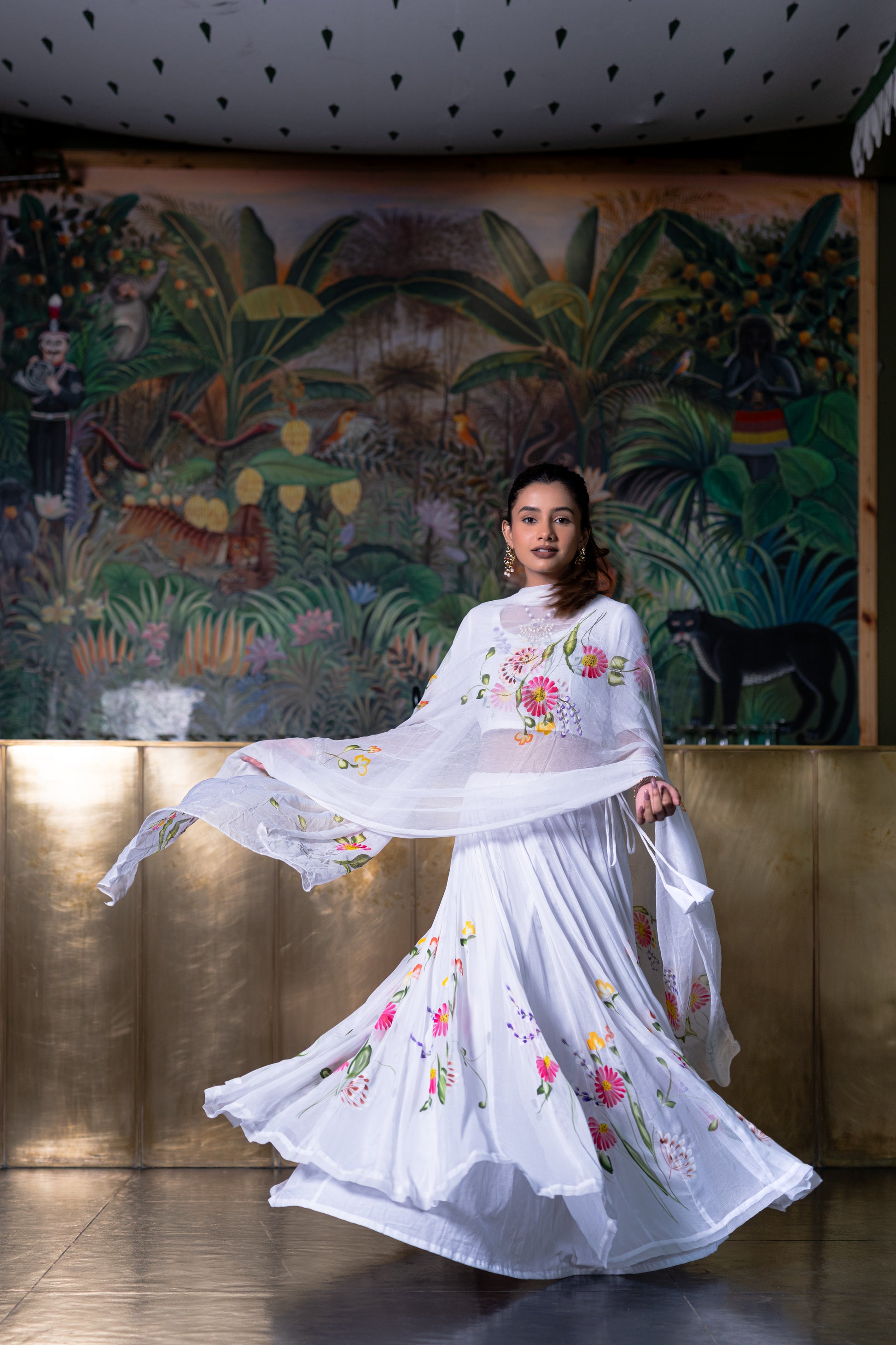 Introducing the Exquisite White Chiffon Hand-Painted Lehenga Set – Moksha Collection by Savina by Imroz House